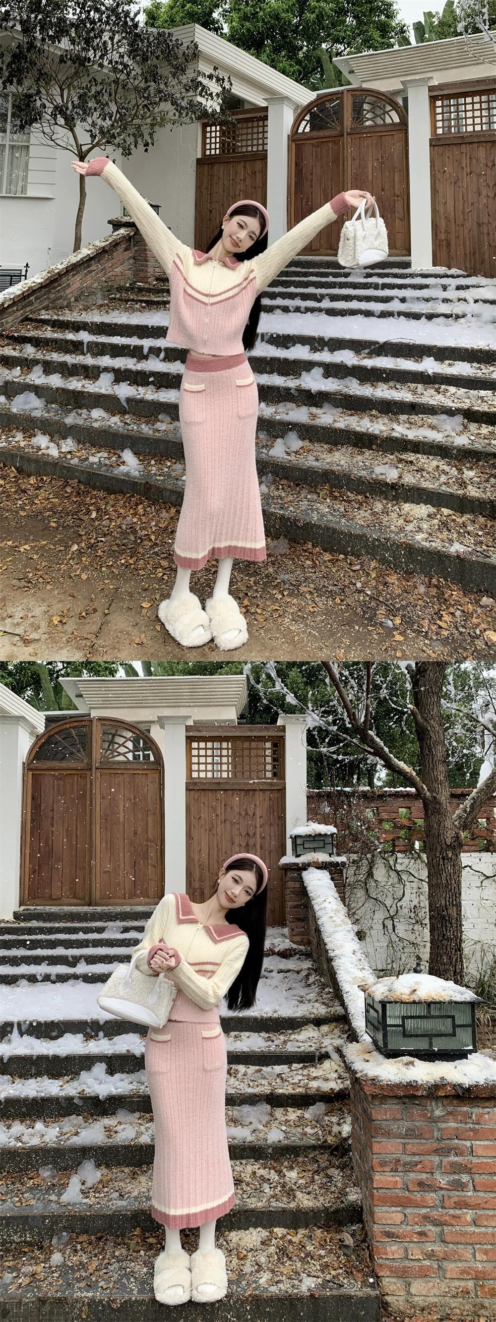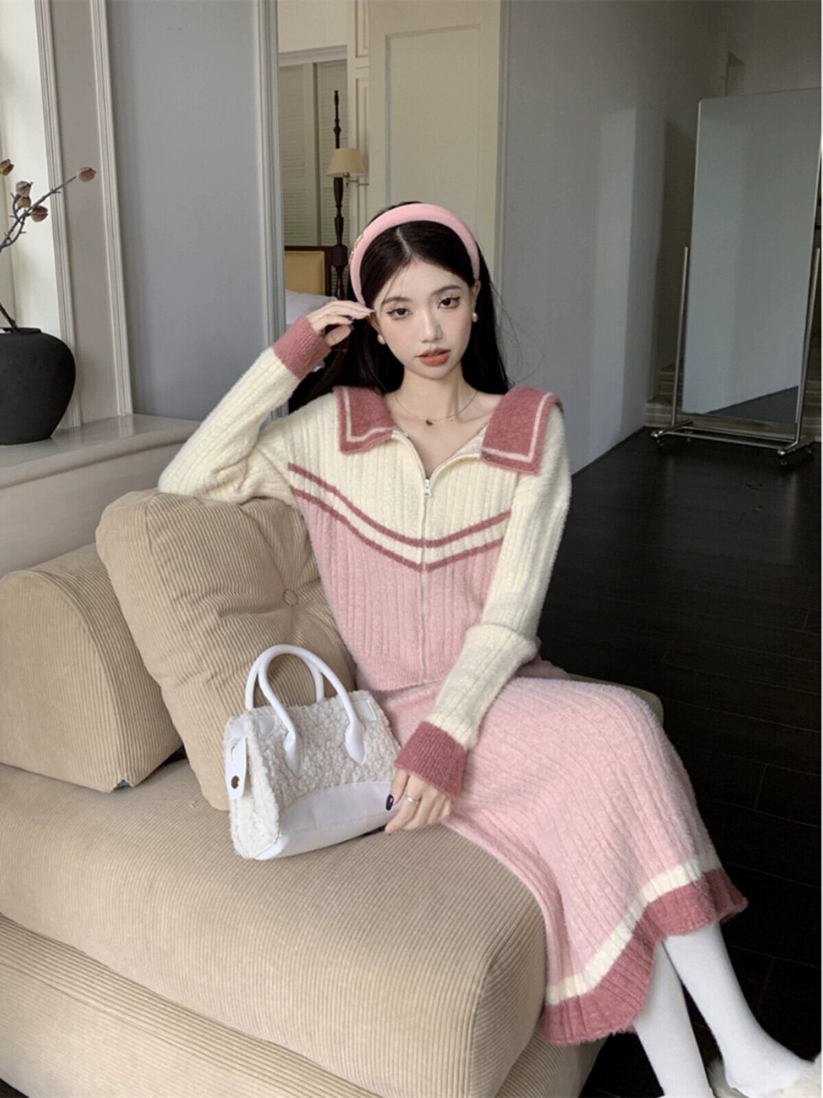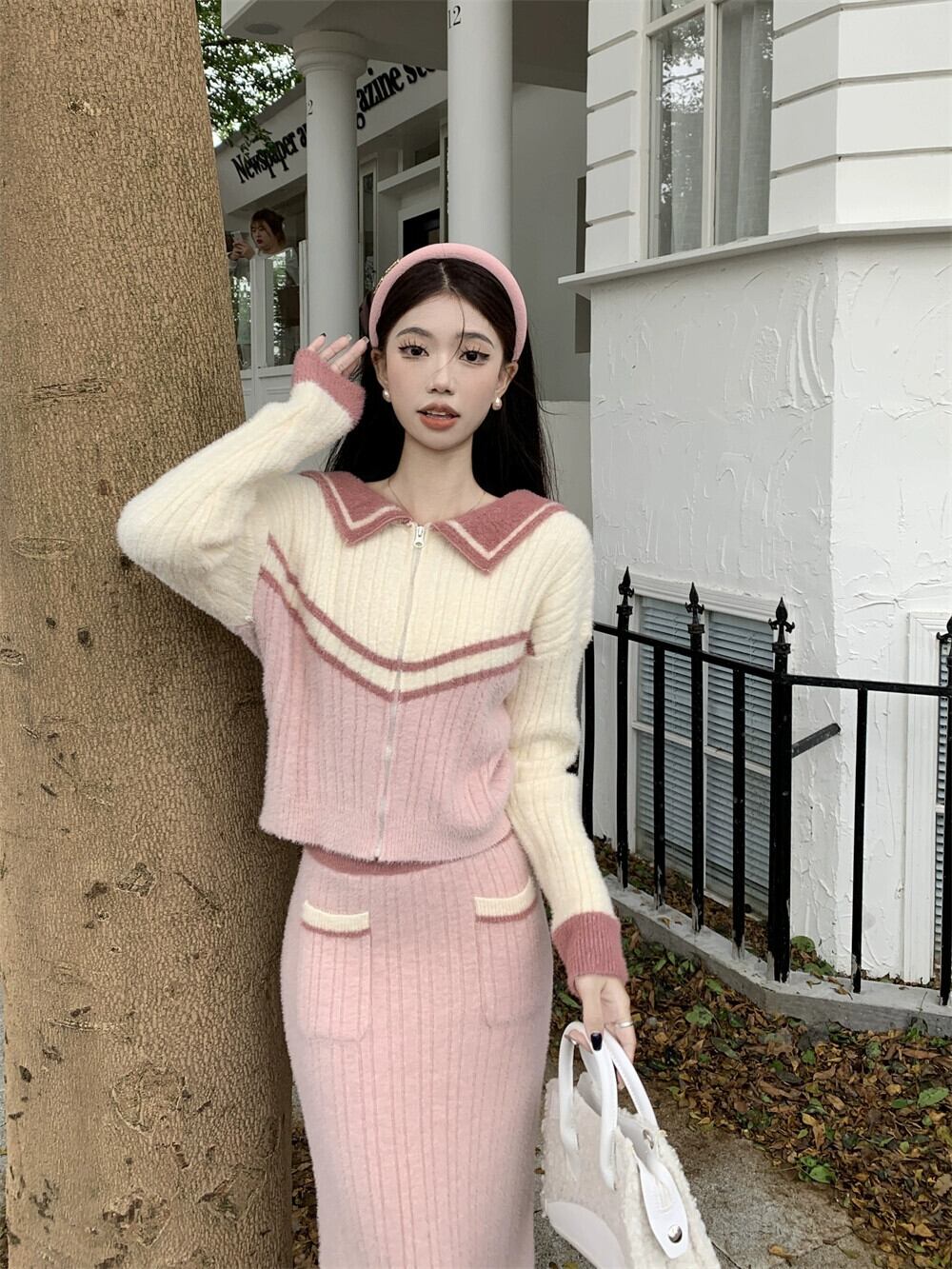 イミテーションミンクラペル優しい風長袖ニットカーディガンミドル丈スカート女性2024秋冬新作2点セット ロング オータム 秋物 ウィンター 冬物 missk87942828155