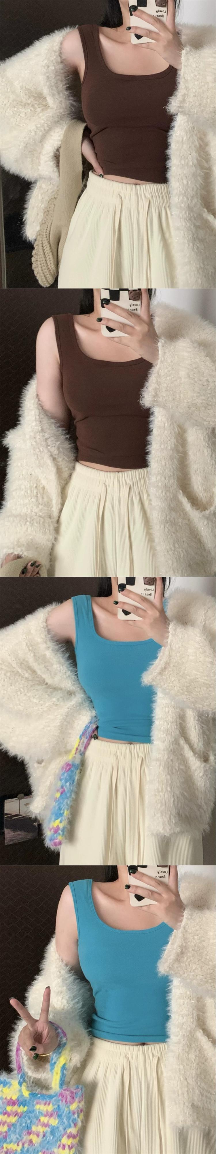 胸パッド付き起毛肥厚ベスト、2024年秋冬の新しいファッションスタイルの気質ショートスリムボトミングスリング女性 オータム 秋物 ウィンター 冬物 missk14463347885