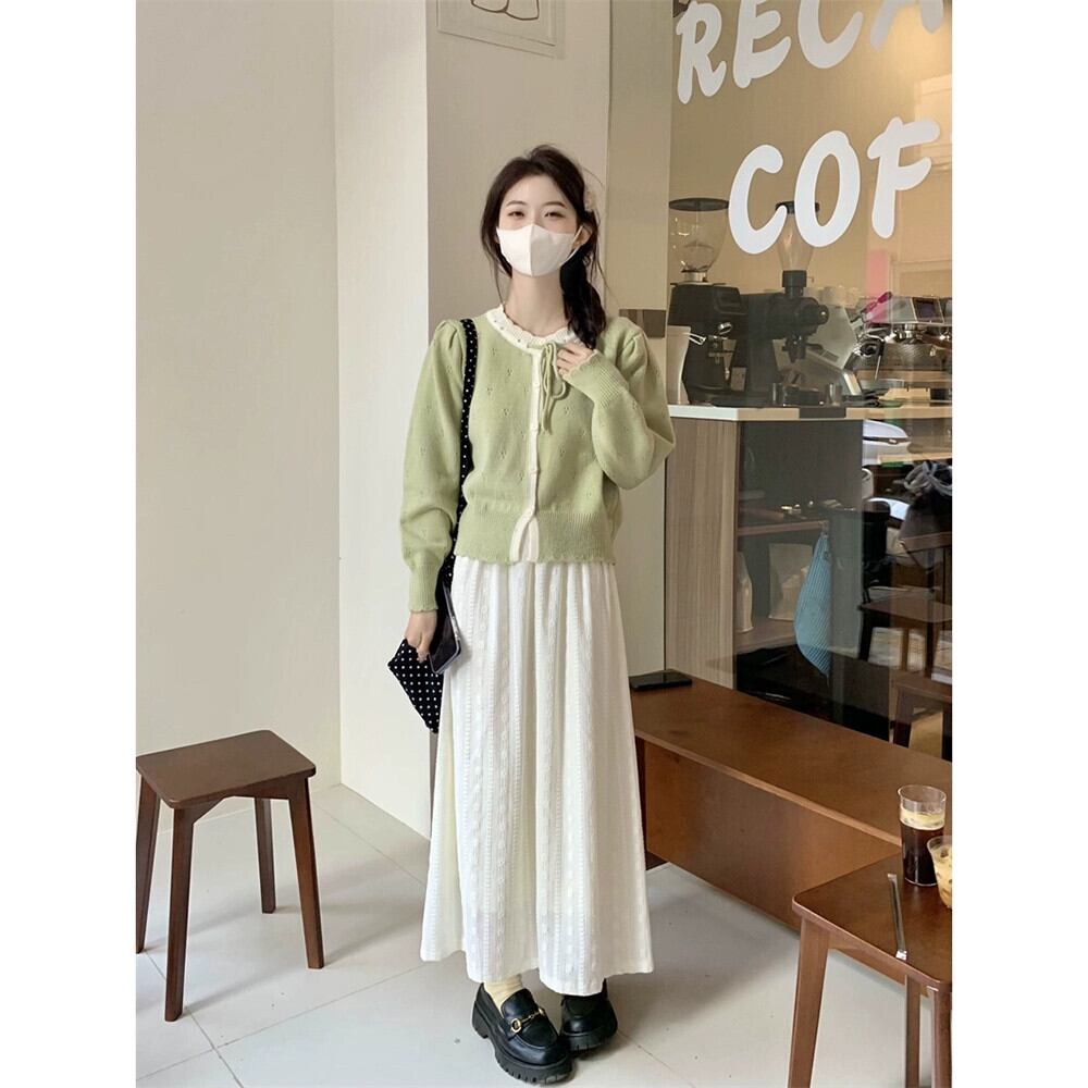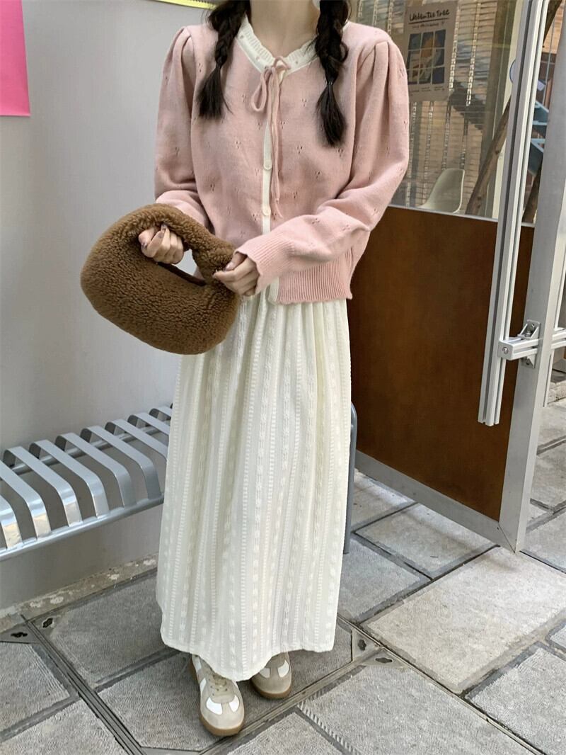 色:ピンクのセーター,緑のセーター,カーキ色のセーター,アプリコットスカート