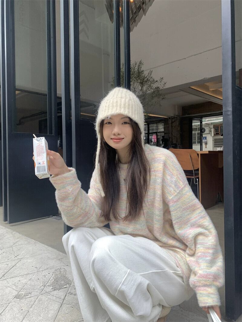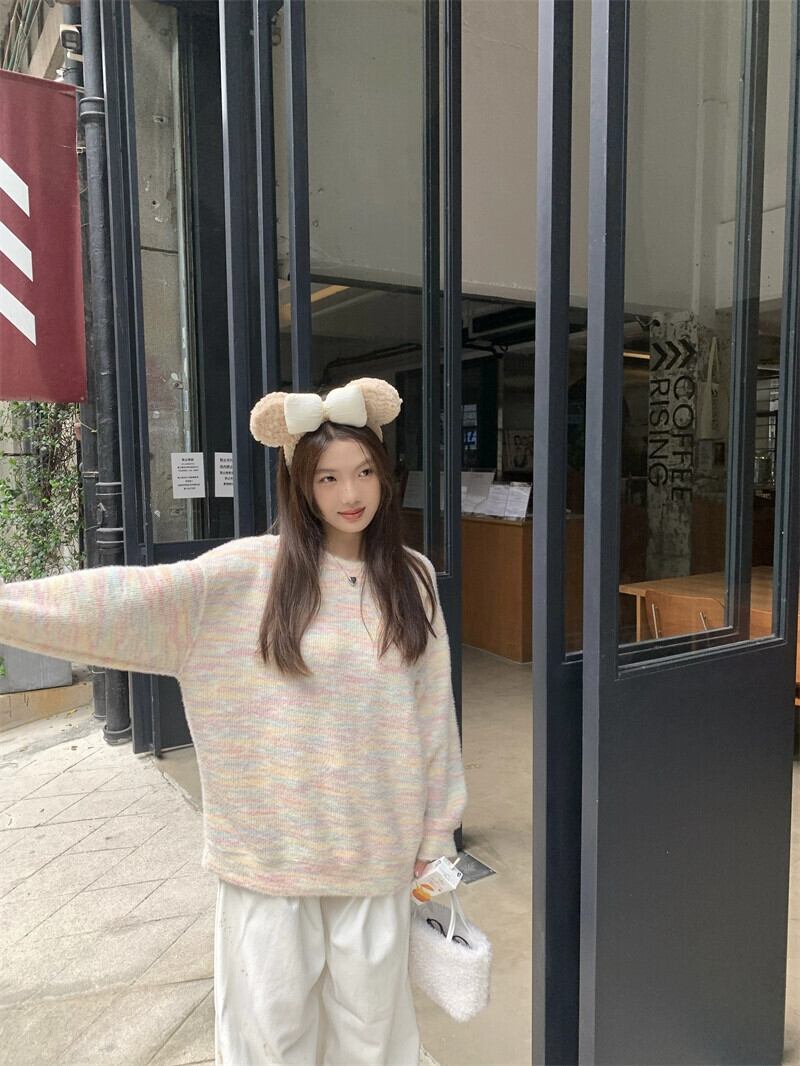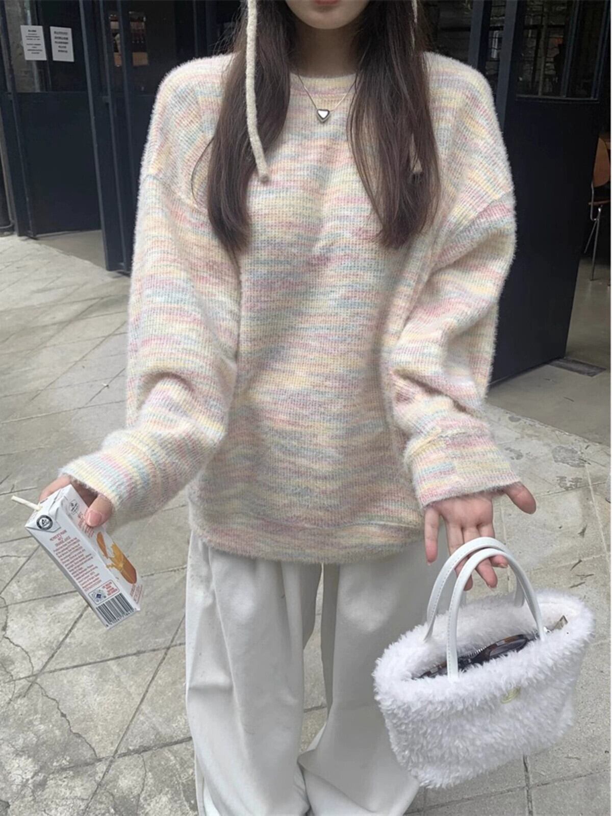 優しい虹色の長袖セーターの女性の秋甘い 2024 新しいルースソフトワックス状のファッション多用途ニットトップ ロング 大人ガーリー スウィート キュート カジュアル オータム 秋物 missk56221537700