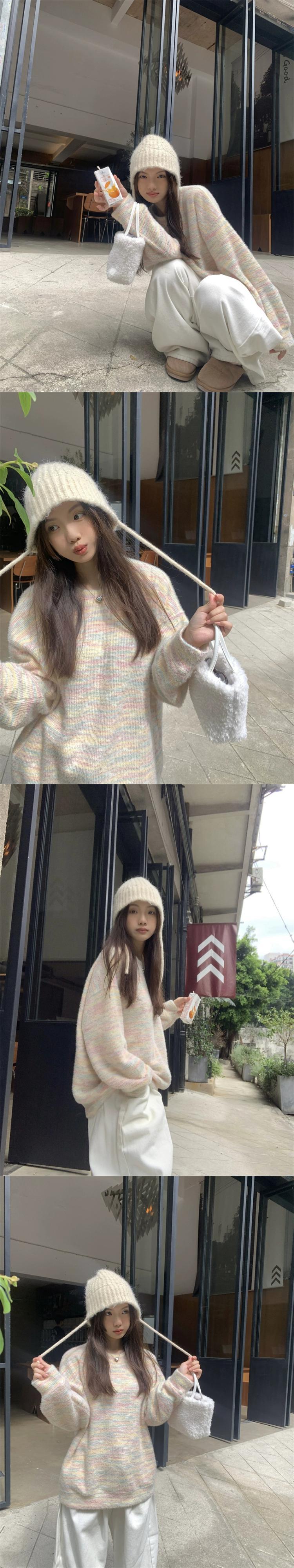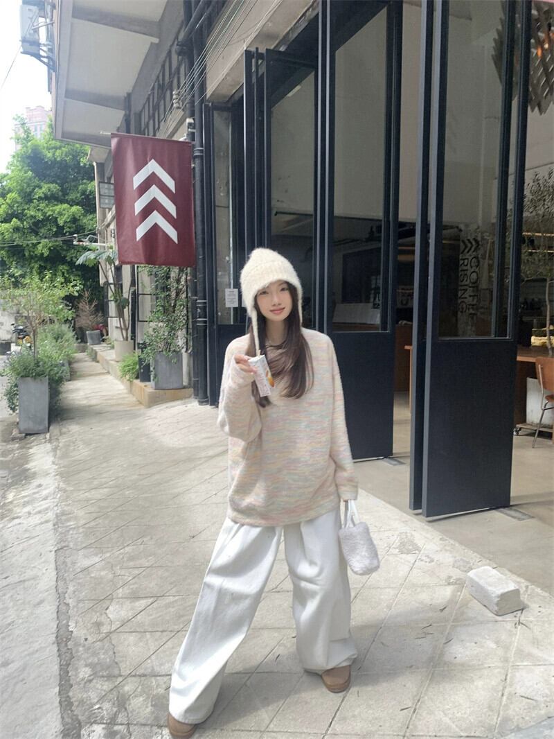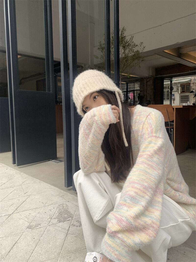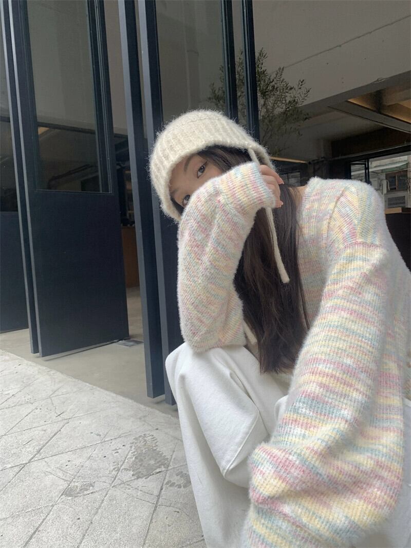 優しい虹色の長袖セーターの女性の秋甘い 2024 新しいルースソフトワックス状のファッション多用途ニットトップ ロング 大人ガーリー スウィート キュート カジュアル オータム 秋物 missk56221537700
