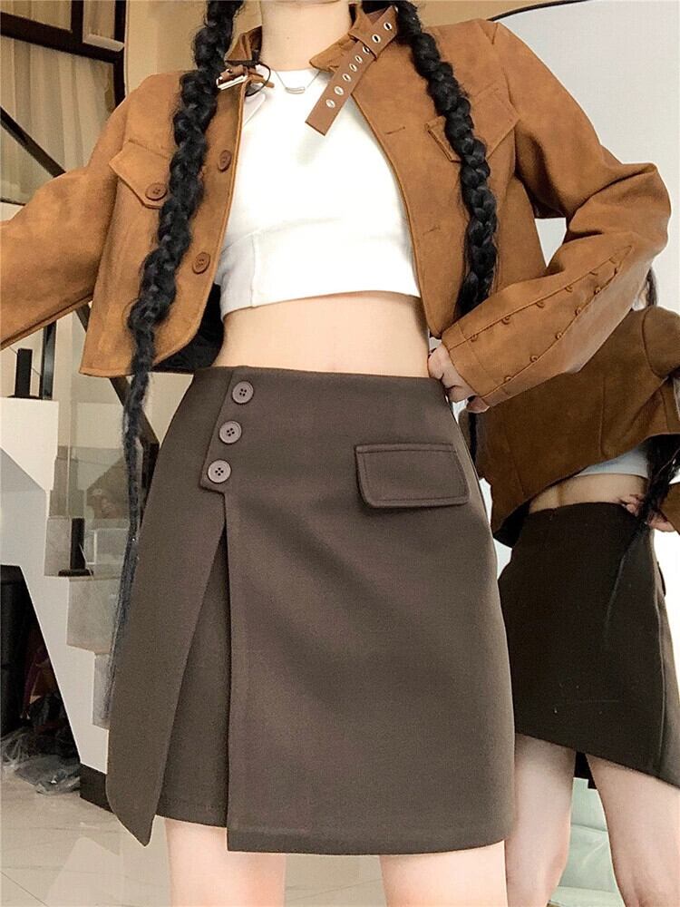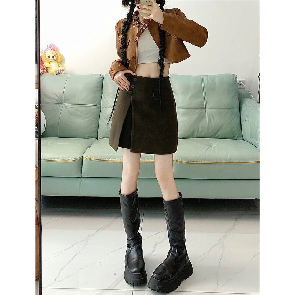 肥厚ウールスカート女性の秋冬バージョン 2024 新しいハイウエストスリムデザイン A ラインショートスカートリトルブラックドレス オータム 秋物 ウィンター 冬物 Aライン missk54091004870