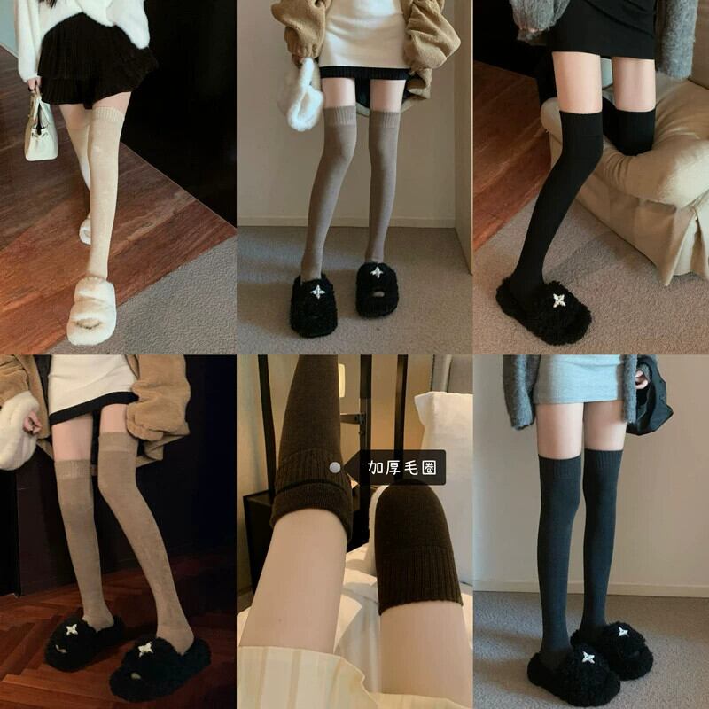 黒ストッキング靴下女性の秋と冬の 2024 新しいオーバーニーソックスミッドストッキング純粋な欲望圧力痩身脚 JK ふくらはぎ靴下 ブラック オータム 秋物 ウィンター 冬物 タイツ ピュア missk80735007364