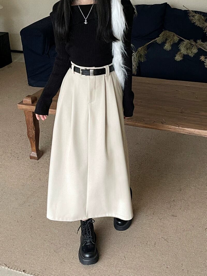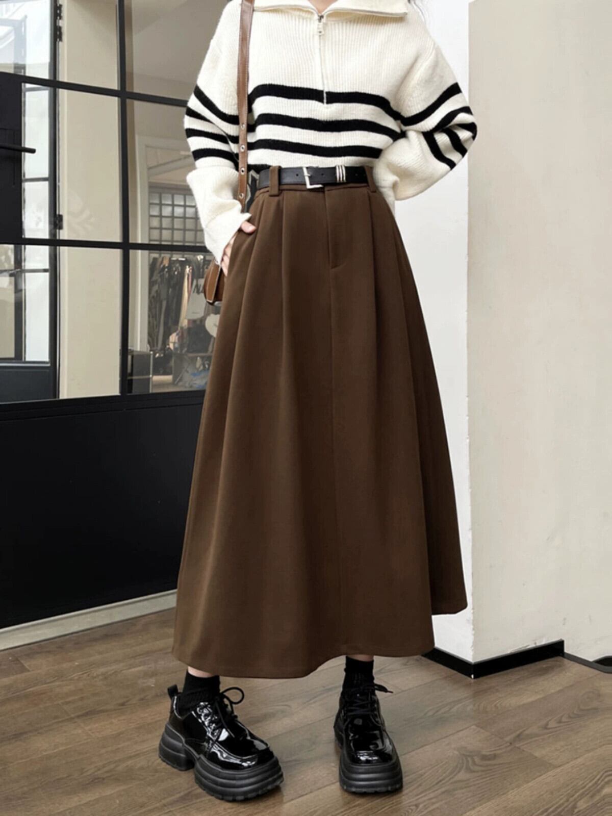 アプリコットシックなスカート秋と冬の新スタイルフレンチ肥厚ハイウエスト痩身気質 A ラインファッションミッドレングススカート女性 ハイウェスト オータム 秋物 ウィンター 冬物 Aライン missk66117858076