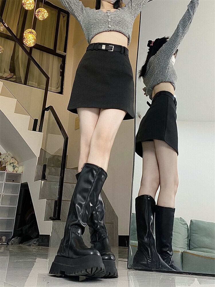 ウールのショートスカートの女性、秋と冬バージョン 2024 新しいハイウエスト痩身抗露出 A ラインヒップカバースカートリトルブラックスカート オータム 秋物 ウィンター 冬物 Aライン missk6021656536