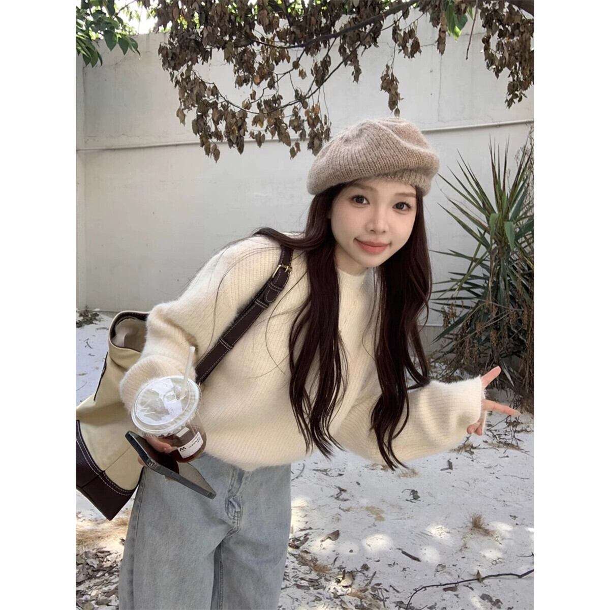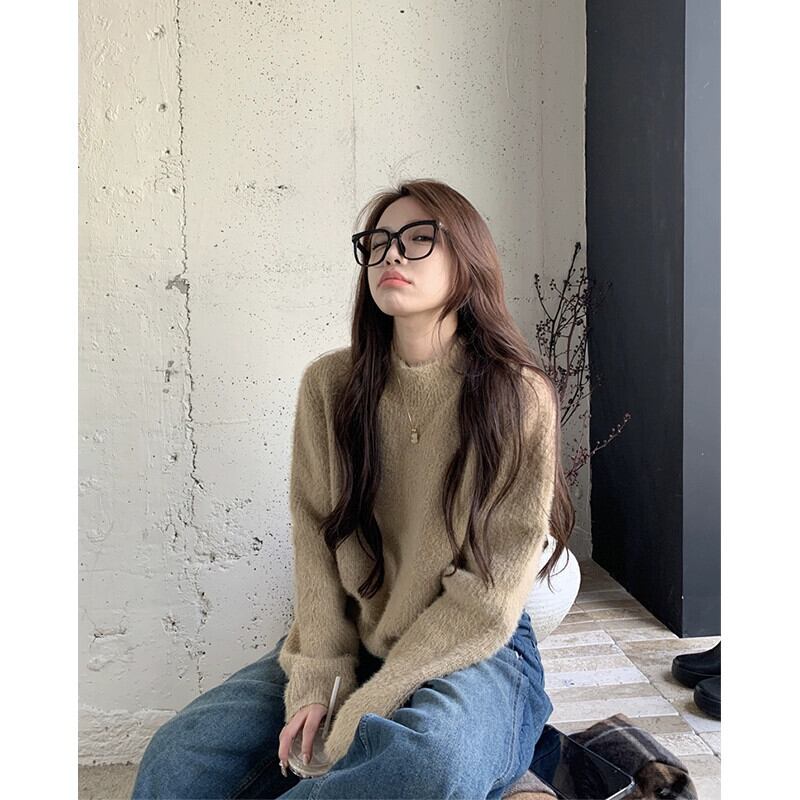 怠惰なスタイルハーフタートルネック長袖セーター女性秋と冬 2024 新しい無地多用途ソフトワックスプルオーバーニットトップトレンディ ロング オータム 秋物 ウィンター 冬物 ソリッドカラー missk5794122930