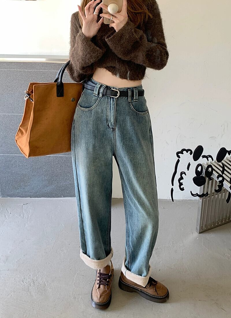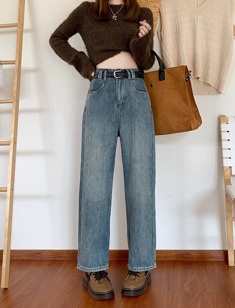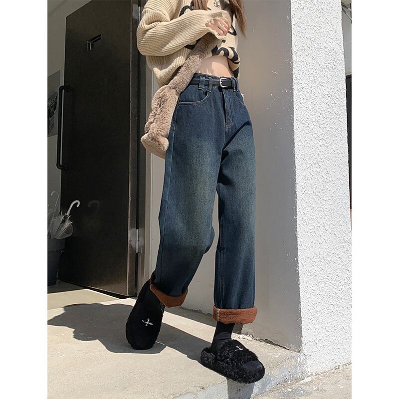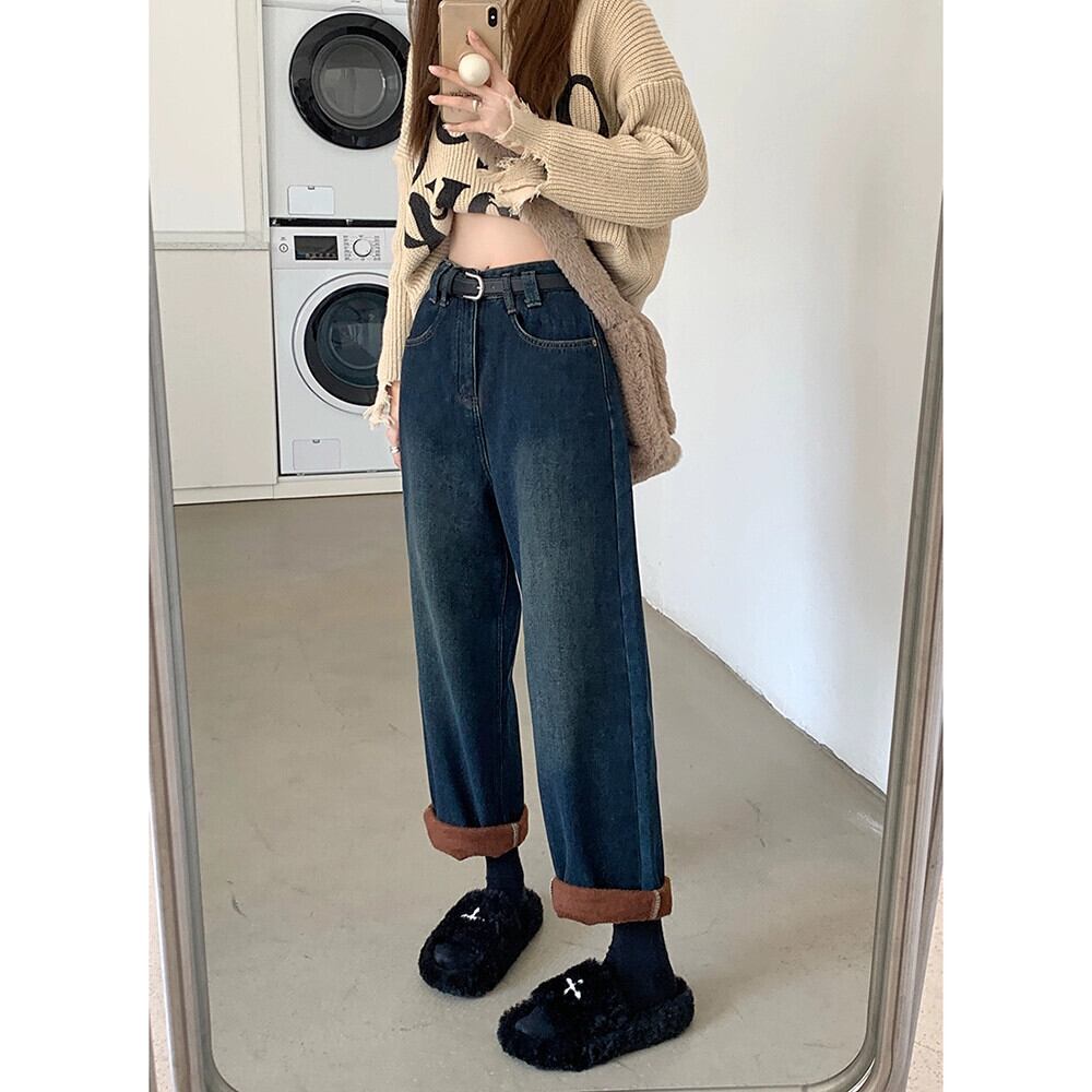 レトロベルベット肥厚ジーンズ秋冬 2024 新しいフランス多用途暖かいハイウエストストレートワイドレッグパンツ女性 オータム 秋物 ウィンター 冬物 missk13070469036