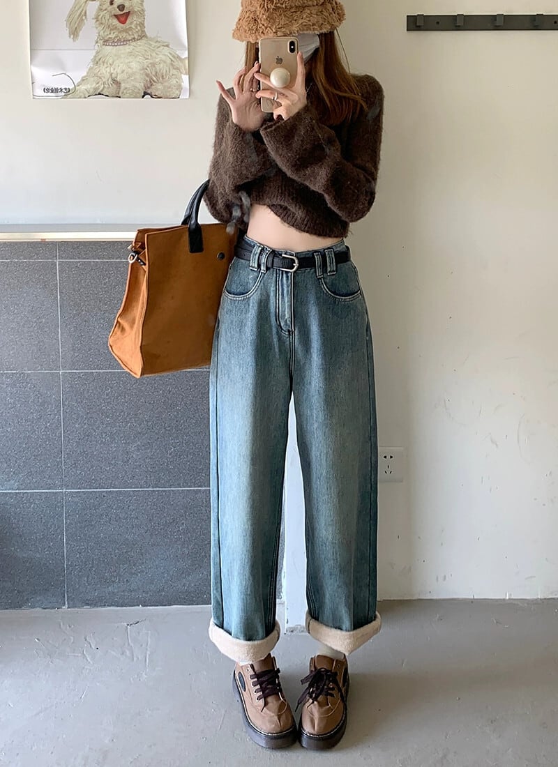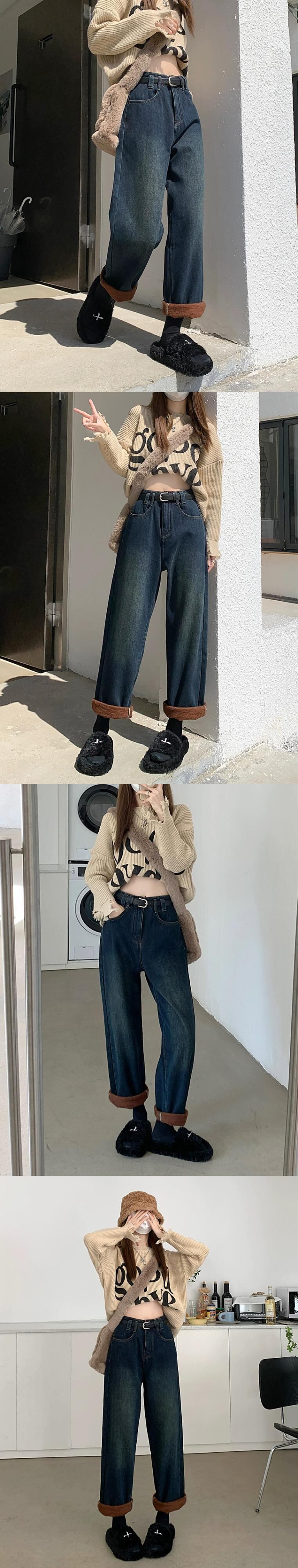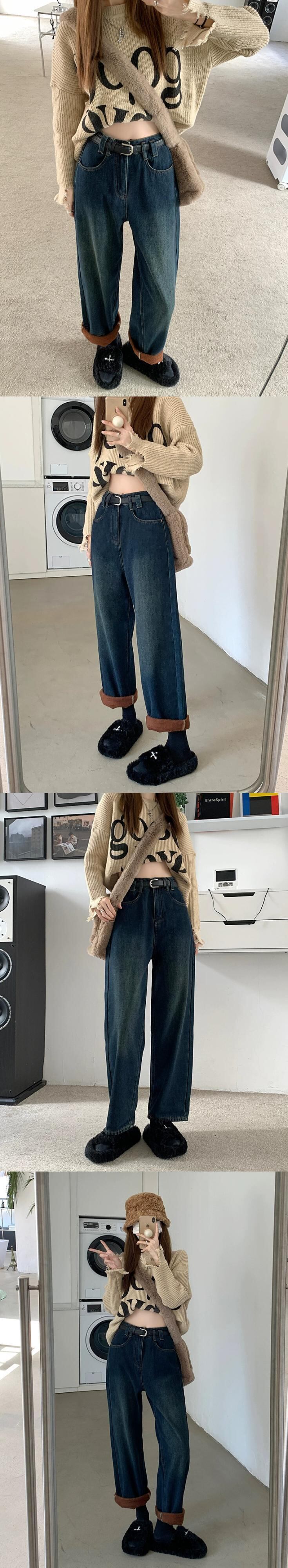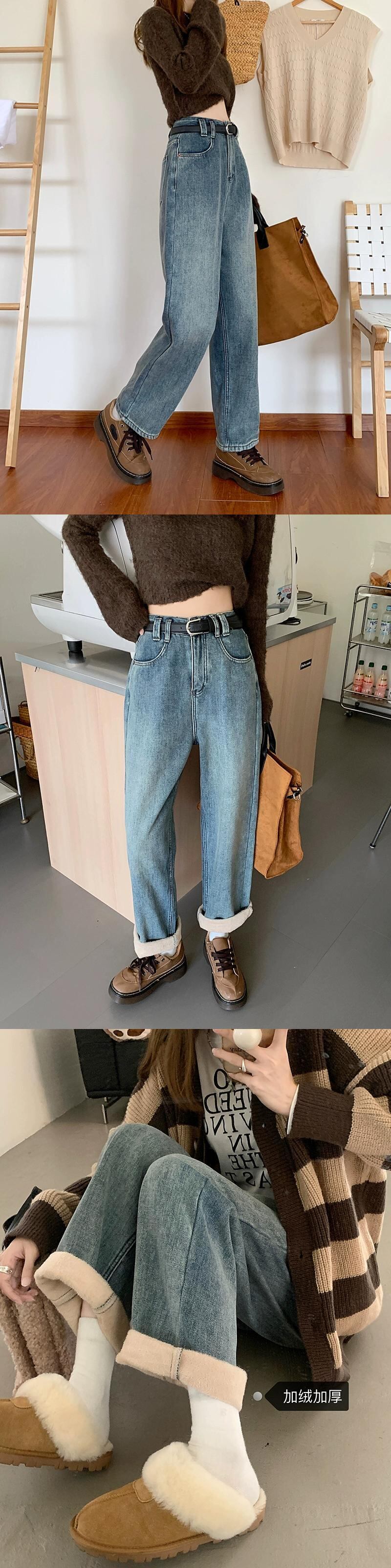 レトロベルベット肥厚ジーンズ秋冬 2024 新しいフランス多用途暖かいハイウエストストレートワイドレッグパンツ女性 オータム 秋物 ウィンター 冬物 missk13070469036