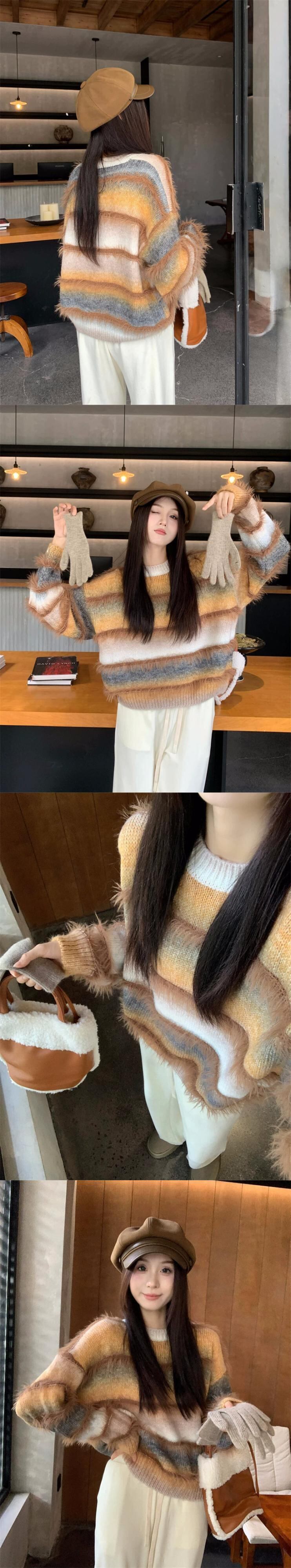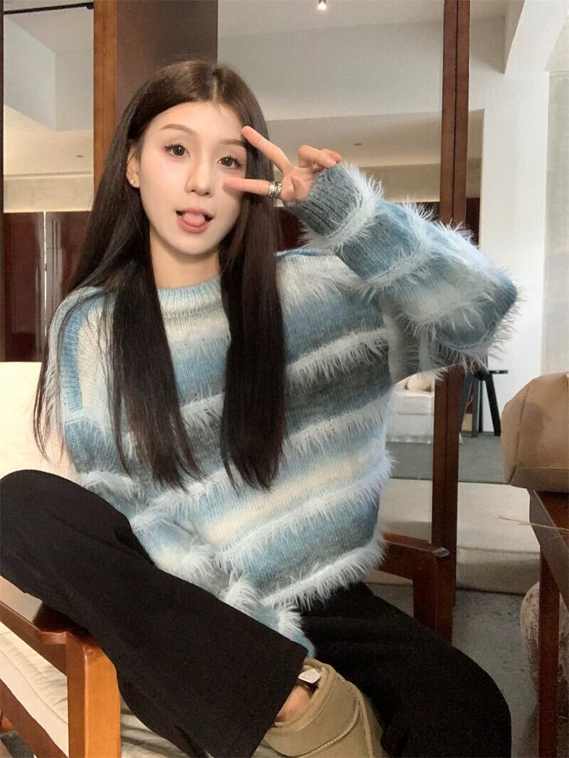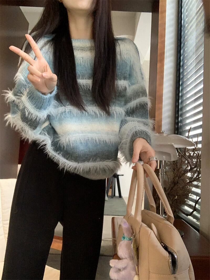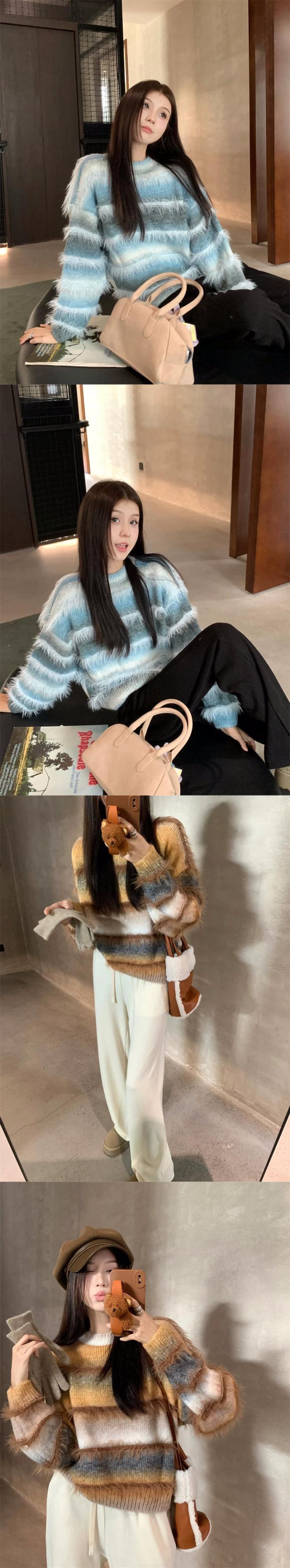 メイラードニットセーター女性の秋冬 2024 新しいグラデーションカラー怠惰なスタイル豪華なルーズ長袖トップ ロング オータム 秋物 ウィンター 冬物 missk1321111492