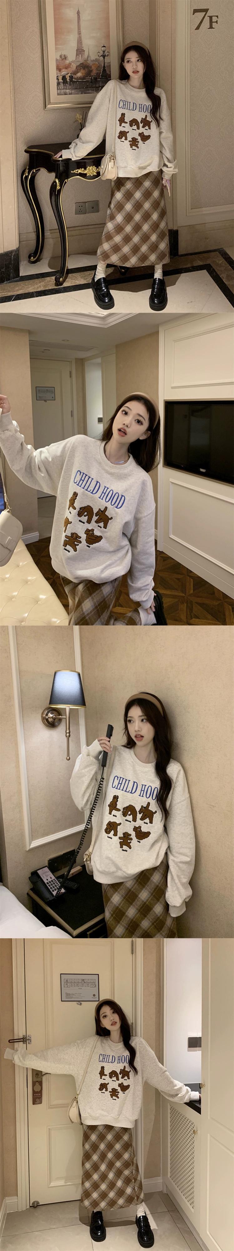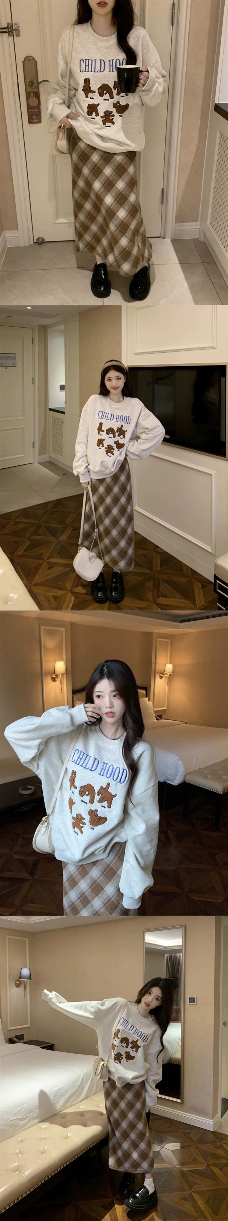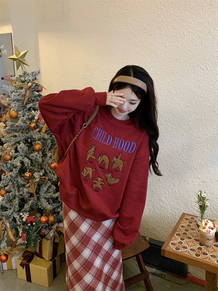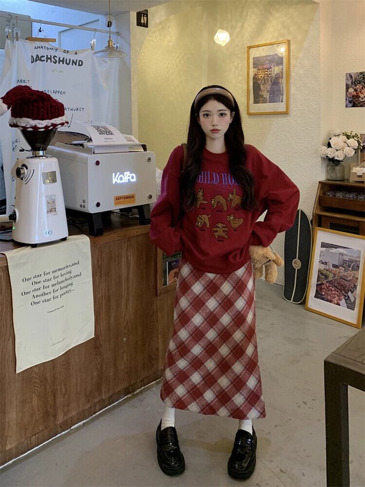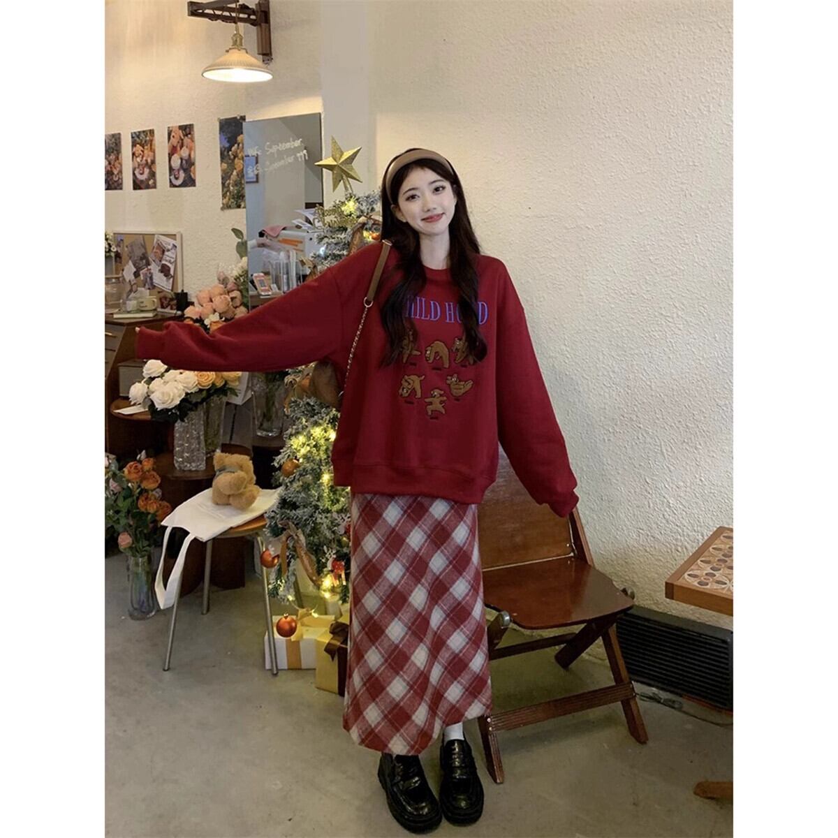 年の雰囲気プラスベルベット肥厚長袖スウェットシャツチェック柄スカート女性の秋と冬の 2024 新しいファッションツーピースセット ロング オータム 秋物 ウィンター 冬物 missk5173256244