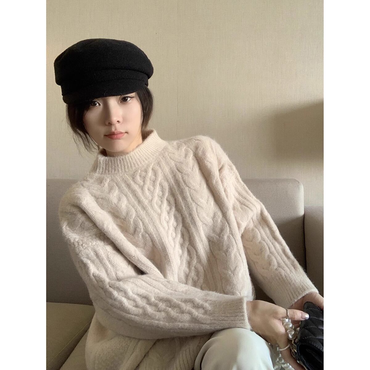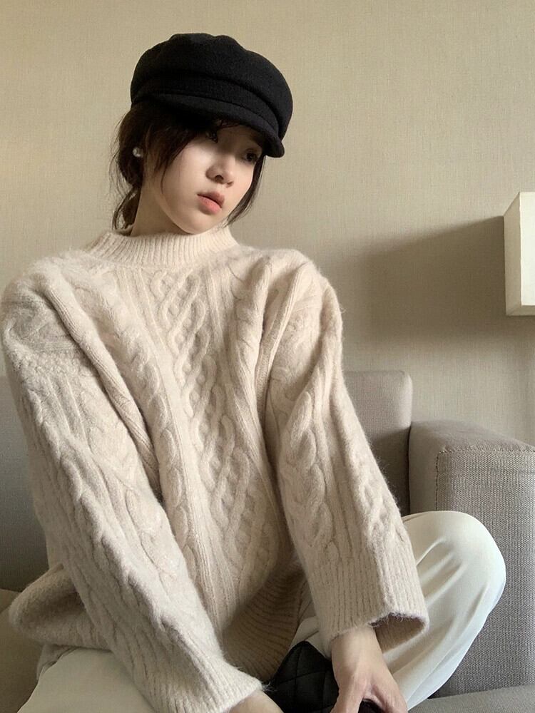 厚みのある厚手のニットツイストセーターの女性、秋冬スタイル2024新しいスタイル怠惰なスタイルのルーズプルオーバー長袖ニットトップ ロング オータム 秋物 ウィンター 冬物 missk13247622826