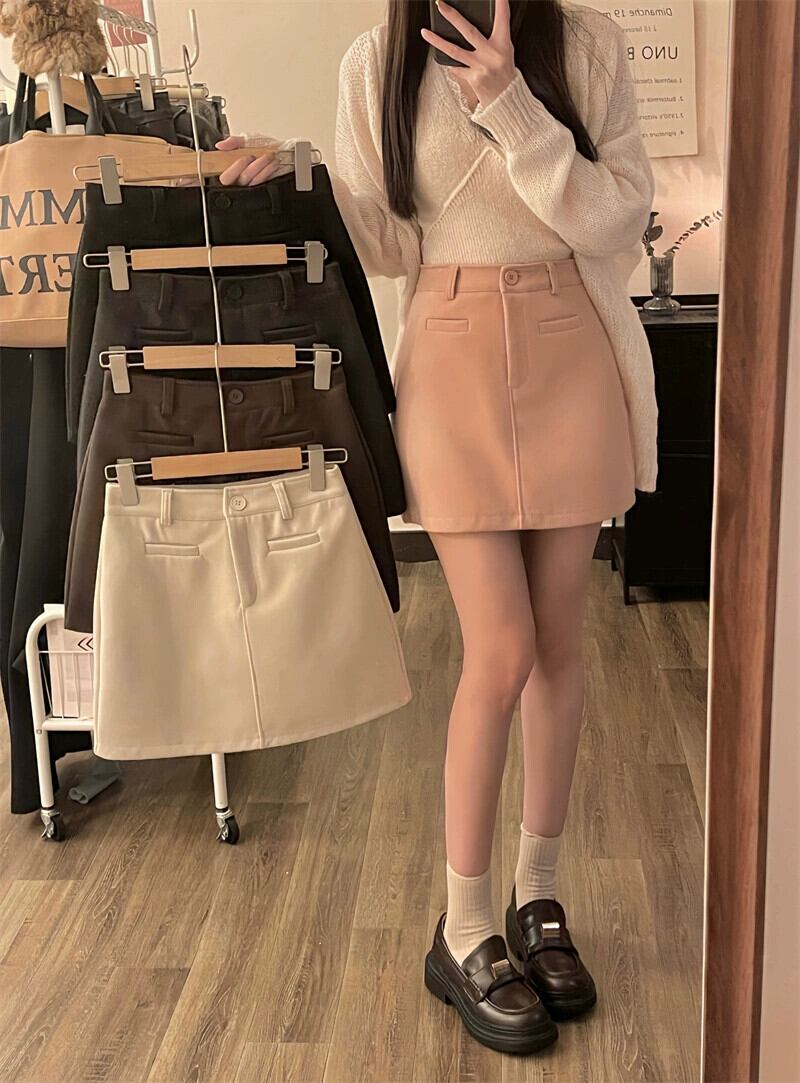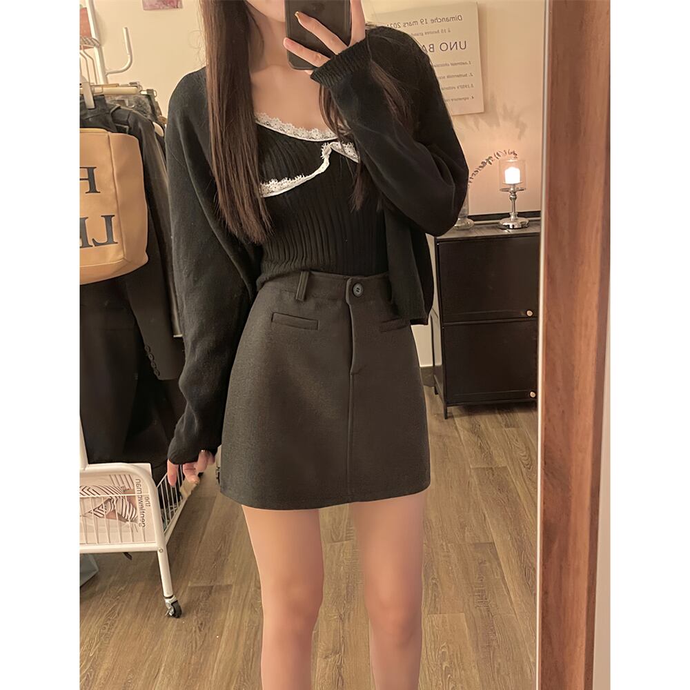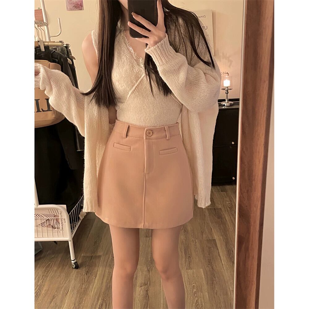 甘くてスパイシーな肥厚ウールスカート女性の秋冬バージョン 2024 ウエストスリムソリッドカラー A ラインヒップスカート 大人ガーリー スウィート キュート カジュアル オータム 秋物 ウィンター 冬物 Aライン missk60783749876