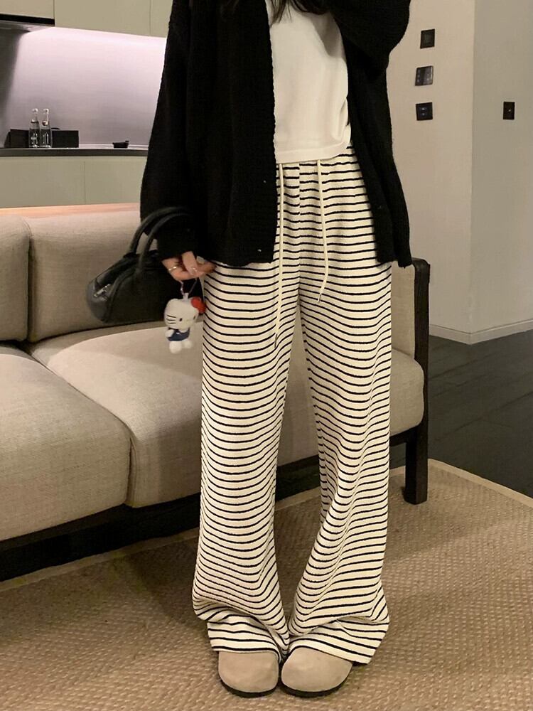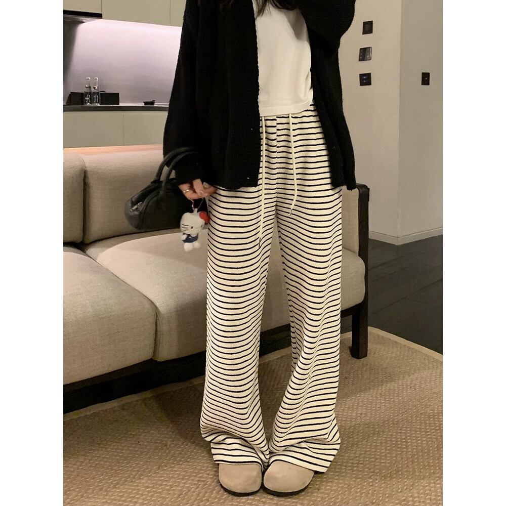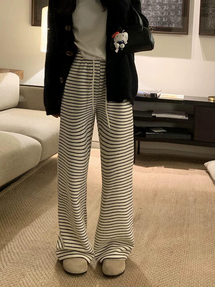 厚いベルベットのストライプのカジュアルパンツの女性、秋冬バージョン 2024 新しいハイウエスト痩身ルーズワイドレッグフロアレングスパンツ オータム 秋物 ウィンター 冬物 missk45113760326