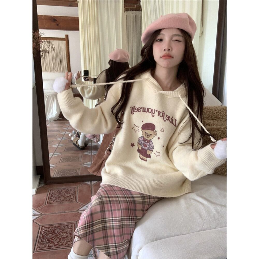 スタイルソフトワックス状フード付きセーター女性秋と冬 2024 新デザインかわいいクマルーズ長袖セーター ロング 大人ガーリー スウィート キュート カジュアル オータム 秋物 ウィンター 冬物 missk71799322178