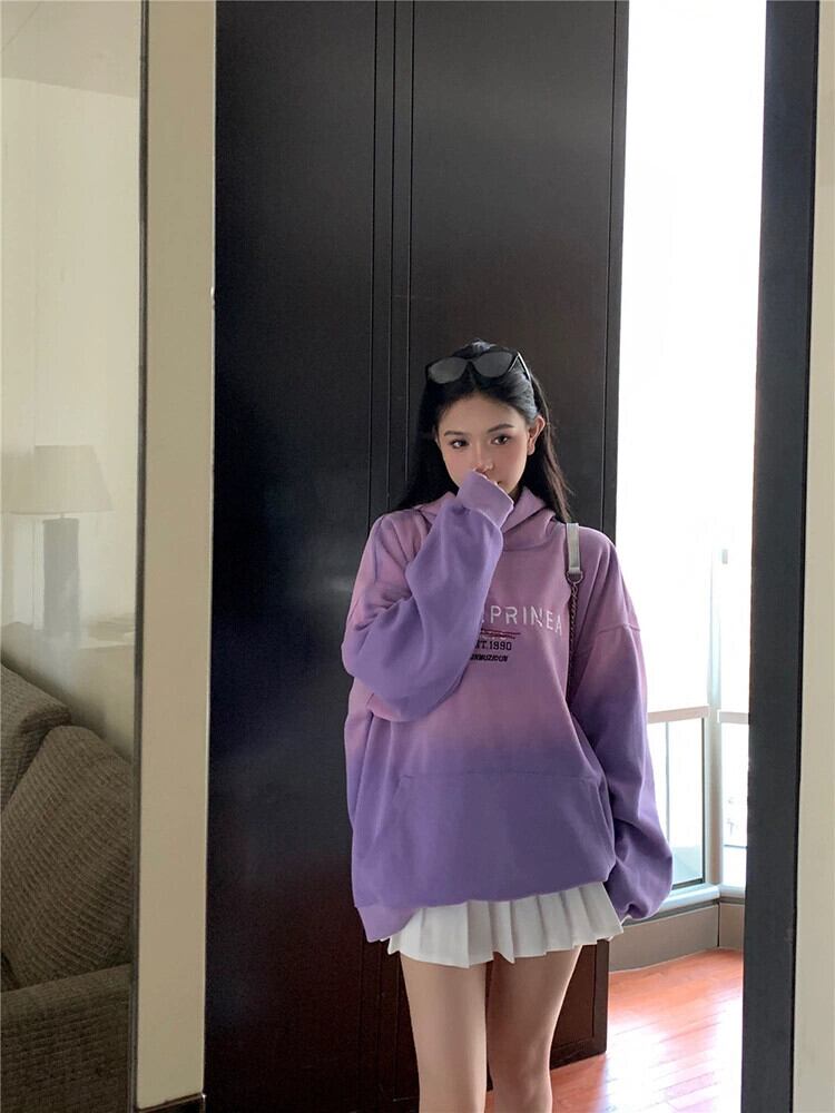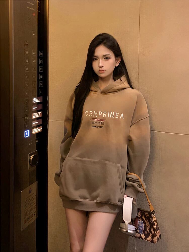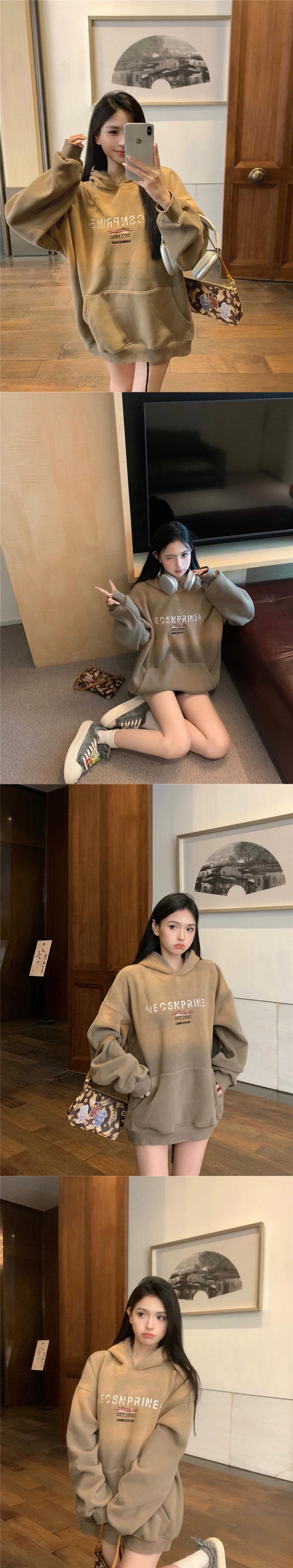 アメリカンベビーベルベットのフード付きスウェットシャツの女性の秋と冬2024新しいグラデーションカラーデザイン肥厚ルーズ長袖トップ ロング オータム 秋物 ウィンター 冬物 missk46918579878