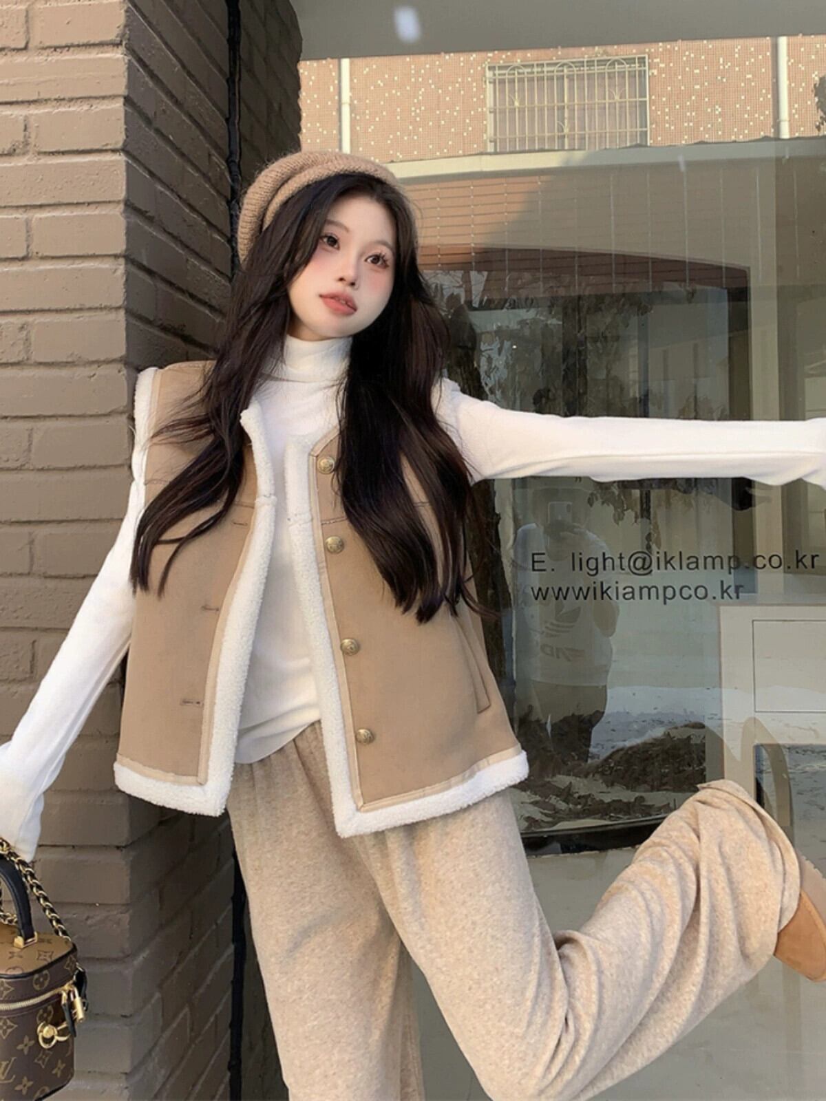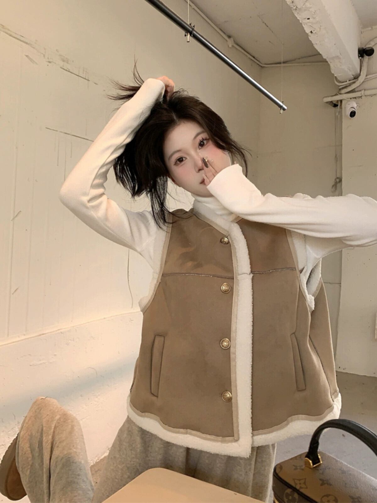 模造ラムウールベストジャケット女性冬 2024 新スタイルフレンチレトロ肥厚暖かいアウターノースリーブベスト ウィンター 冬物 missk97085627989