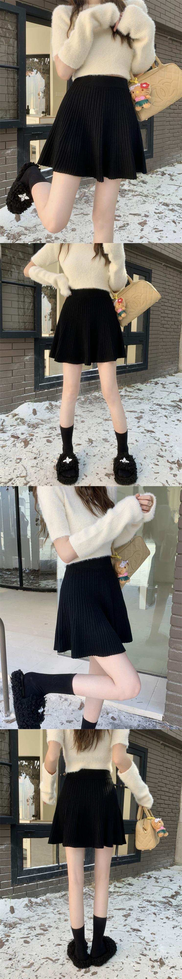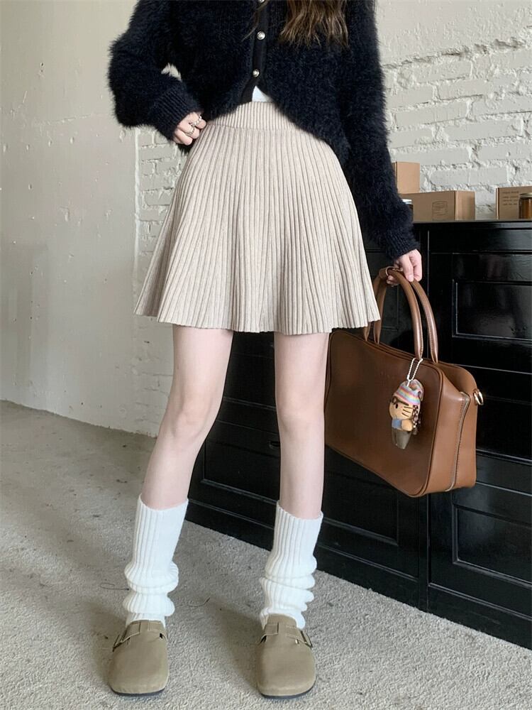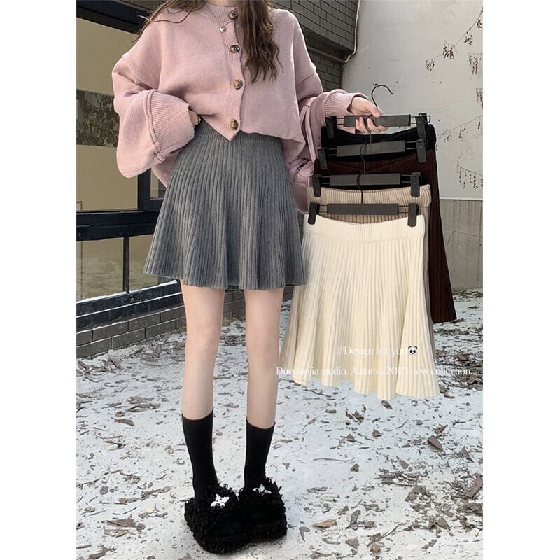 ニットスカートレディース秋バージョン2024新しい弾性ウエストデザインハイウエスト痩身ヒップカバーAラインスカート ハイウェスト エラスティック 伸縮 オータム 秋物 missk28312400667