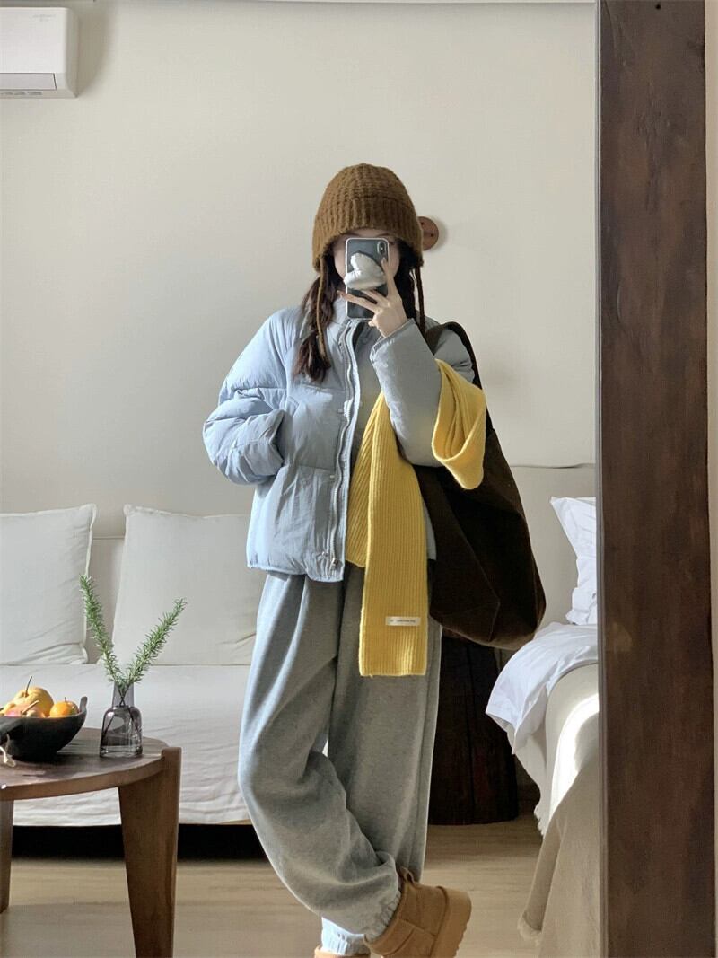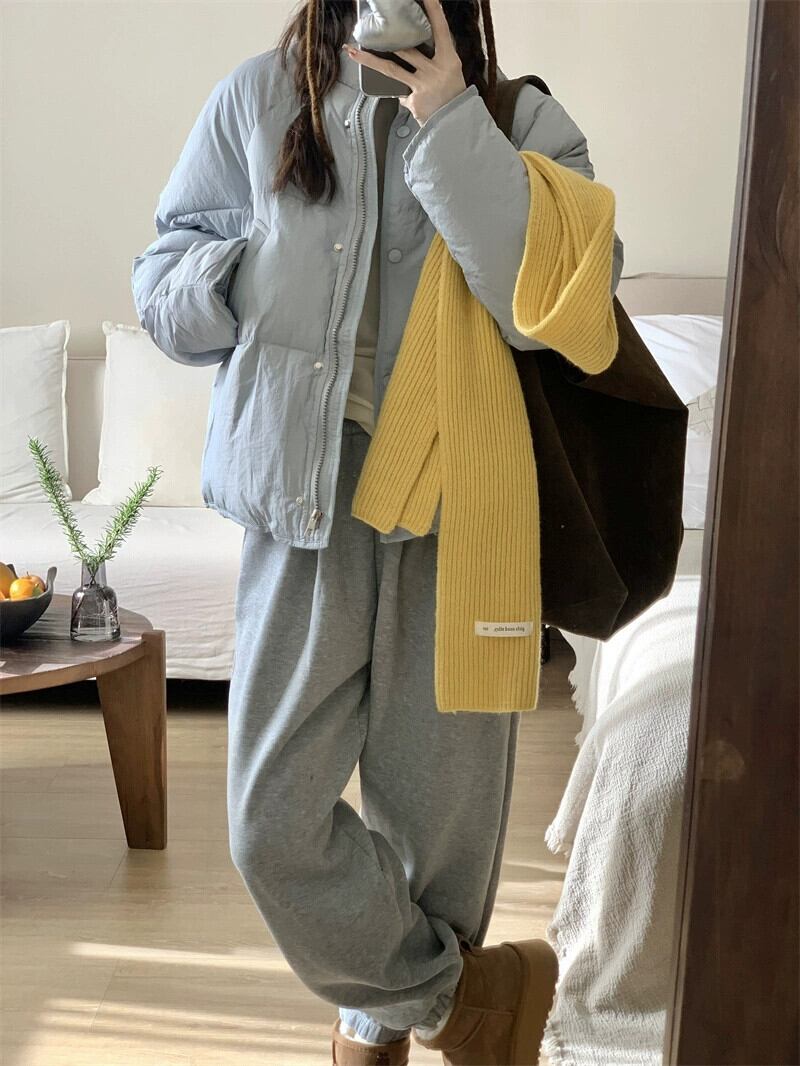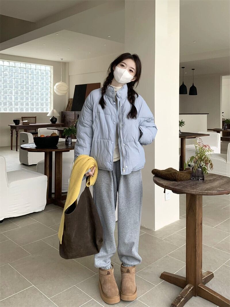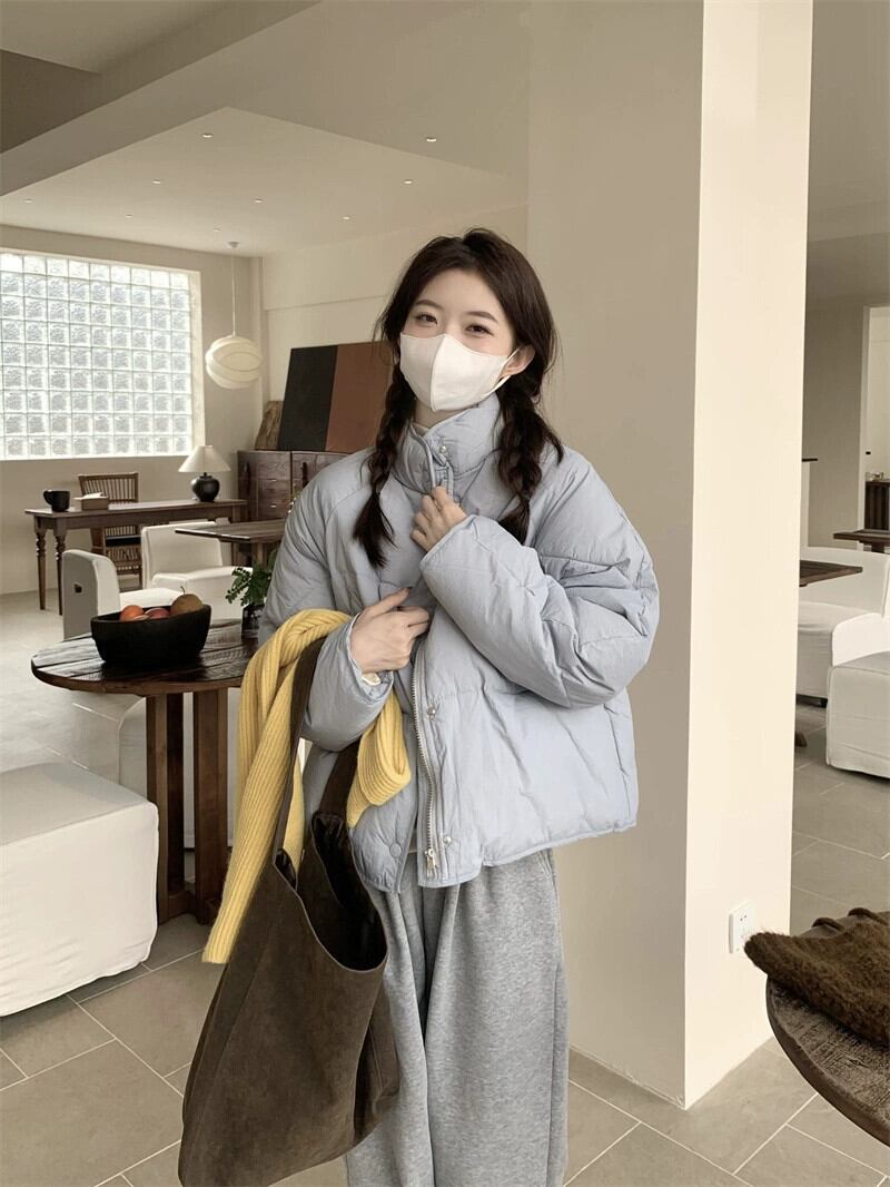 ミルキーブルーの綿のジャケットの女性の春と秋 2024 新しいファッションスタイルのデザイン小さなスタンドカラー長袖ジャケット ロング コットン スプリング 春物 オータム 秋物 missk88430247722