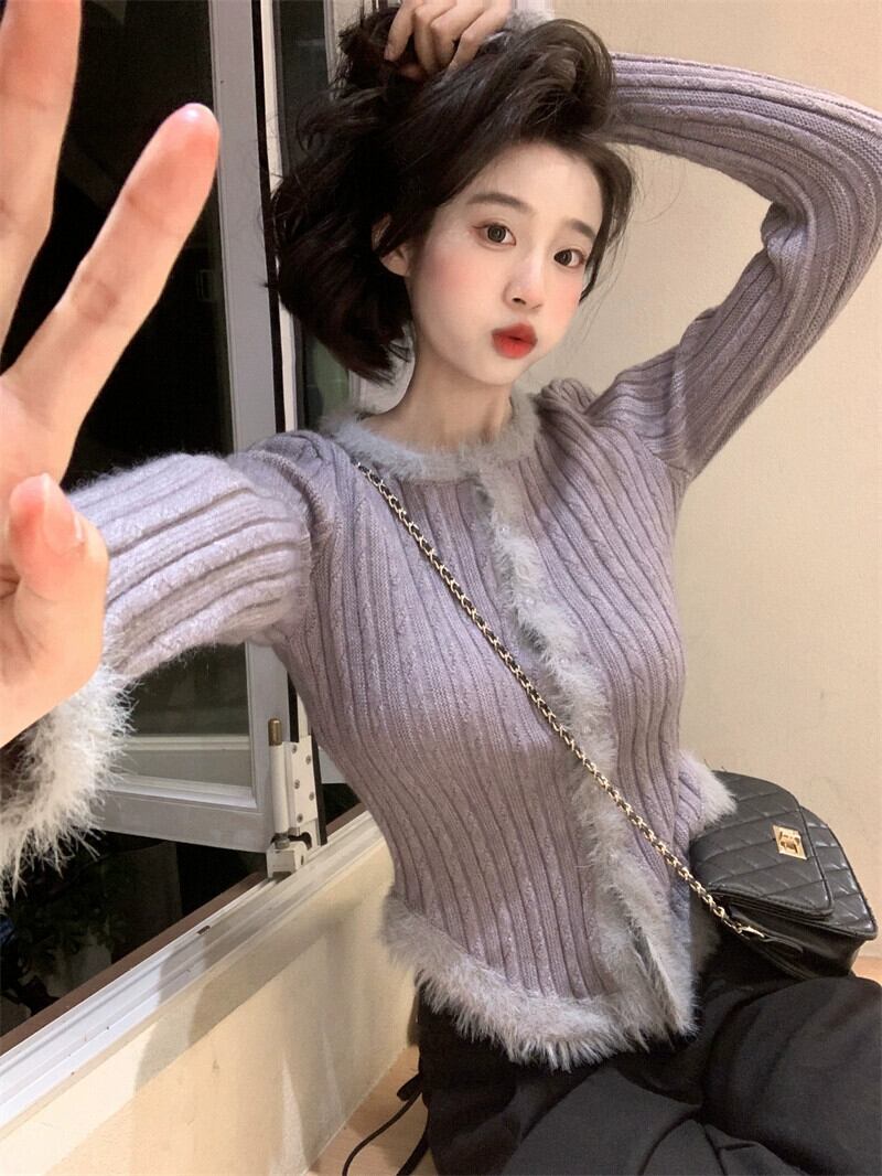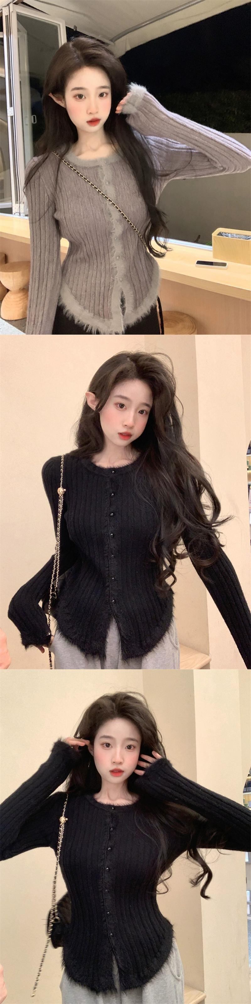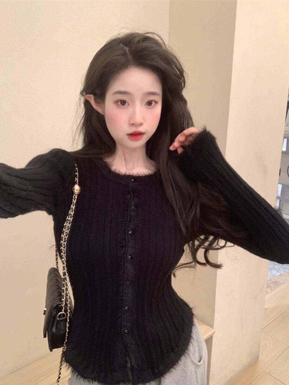 ソフトワックス生エッジ長袖セーター春 2024 新スタイルのレトロな気質スリム底カーディガントップ女性イン ロング スプリング 春物 missk79976046072