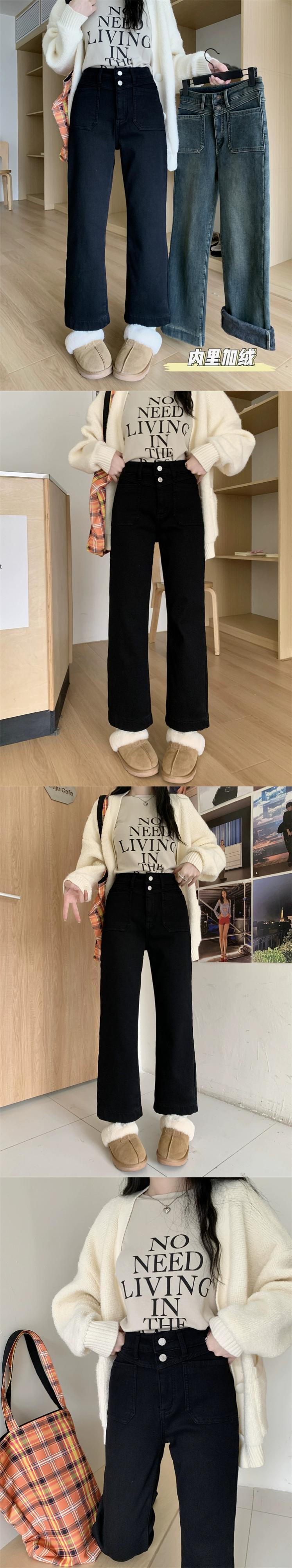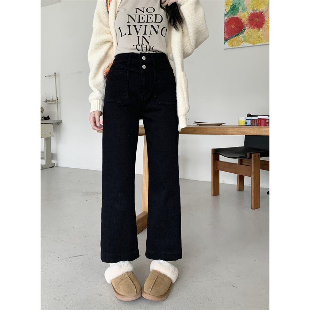 ベルベット肥厚ジーンズ女性春と秋 2024 レトロウエストスリム多用途ストレッチストレート 9 点パンツ スプリング 春物 オータム 秋物 missk15761768403