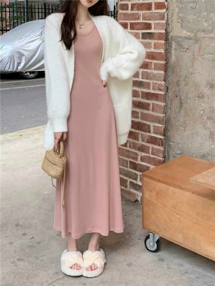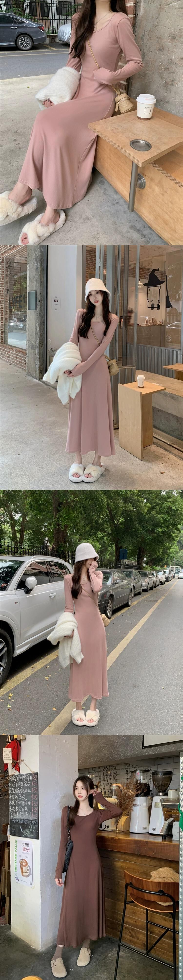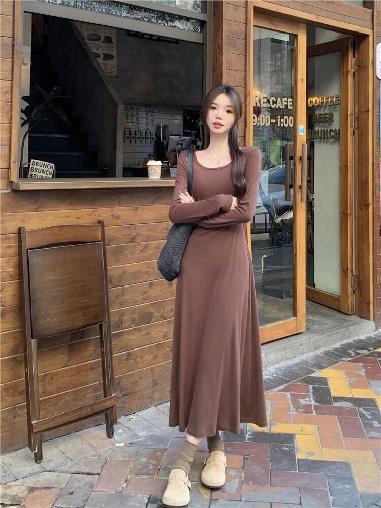 シックな長袖ドレスの女性の春と秋 2024 新しいウエスト痩身ミッドレングスハイエンドボトニングスカート ロング スプリング 春物 オータム 秋物 missk38396011408