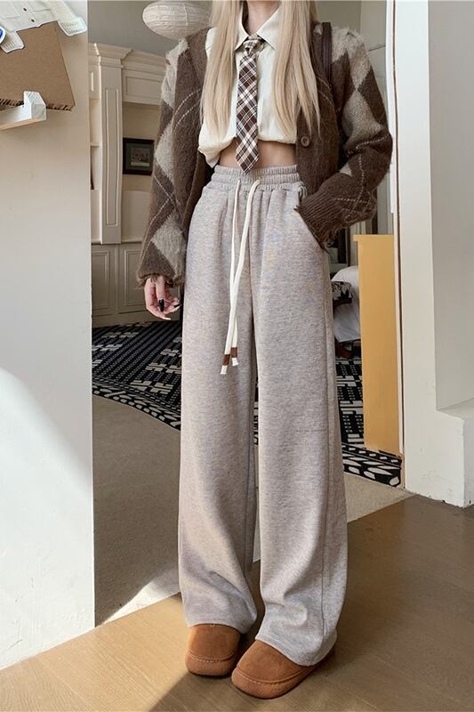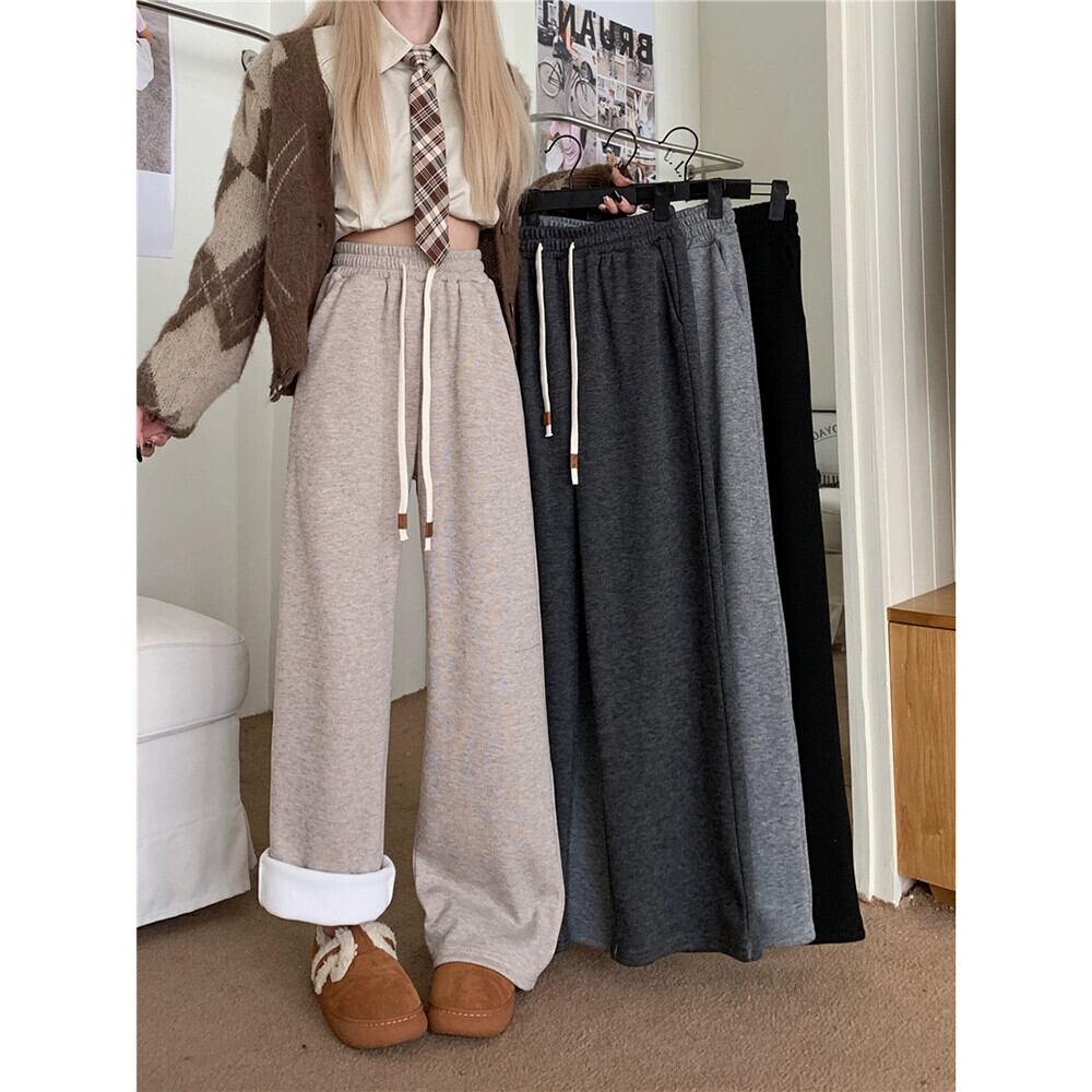 ベルベットと厚みのあるもち米パンツの女性、春と秋バージョン 2024 新しいハイウエスト痩身ドレープワイドレッグストレートカジュアルパンツ スプリング 春物 オータム 秋物 missk14549639634