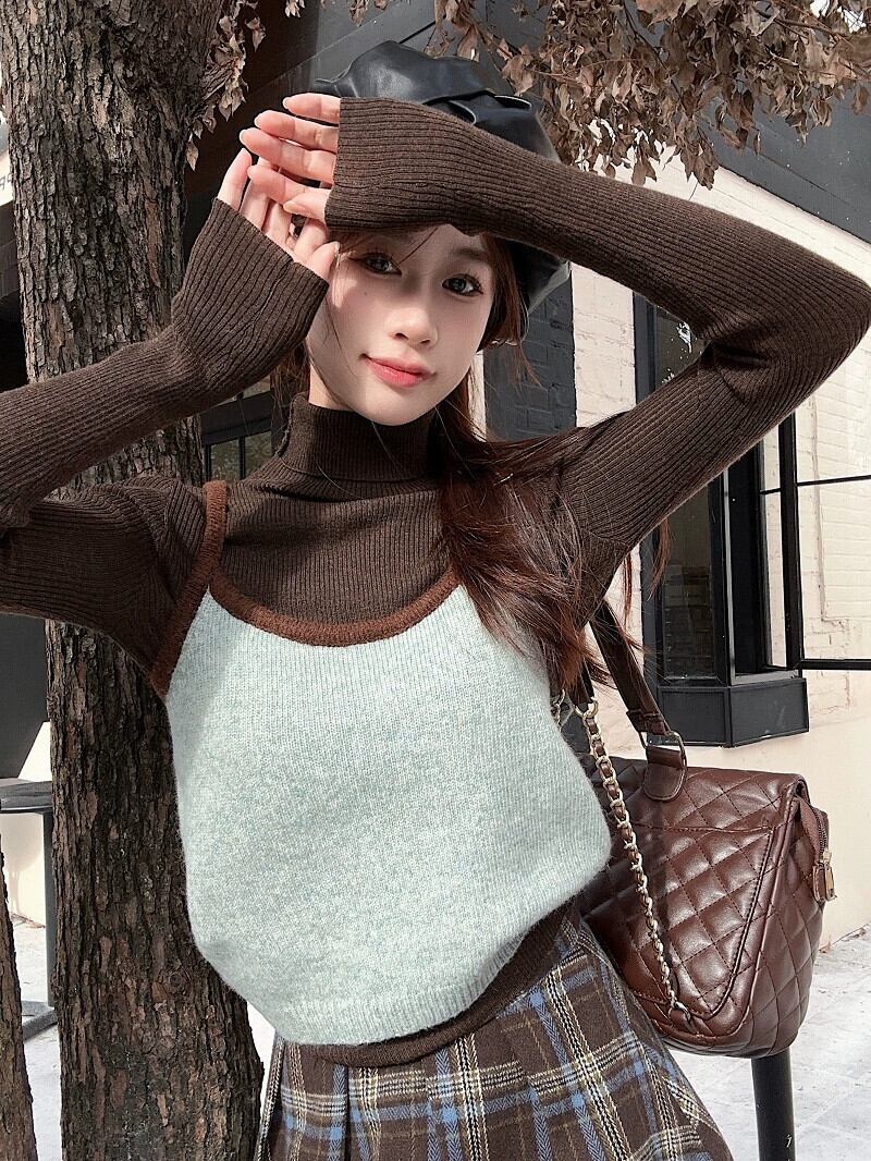 対照的な色のインナーベストサスペンダー女性のハイカラースリム長袖ボトムセーター春の新しいファッションスーツ ロング スプリング 春物 missk29777091