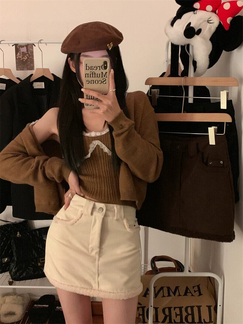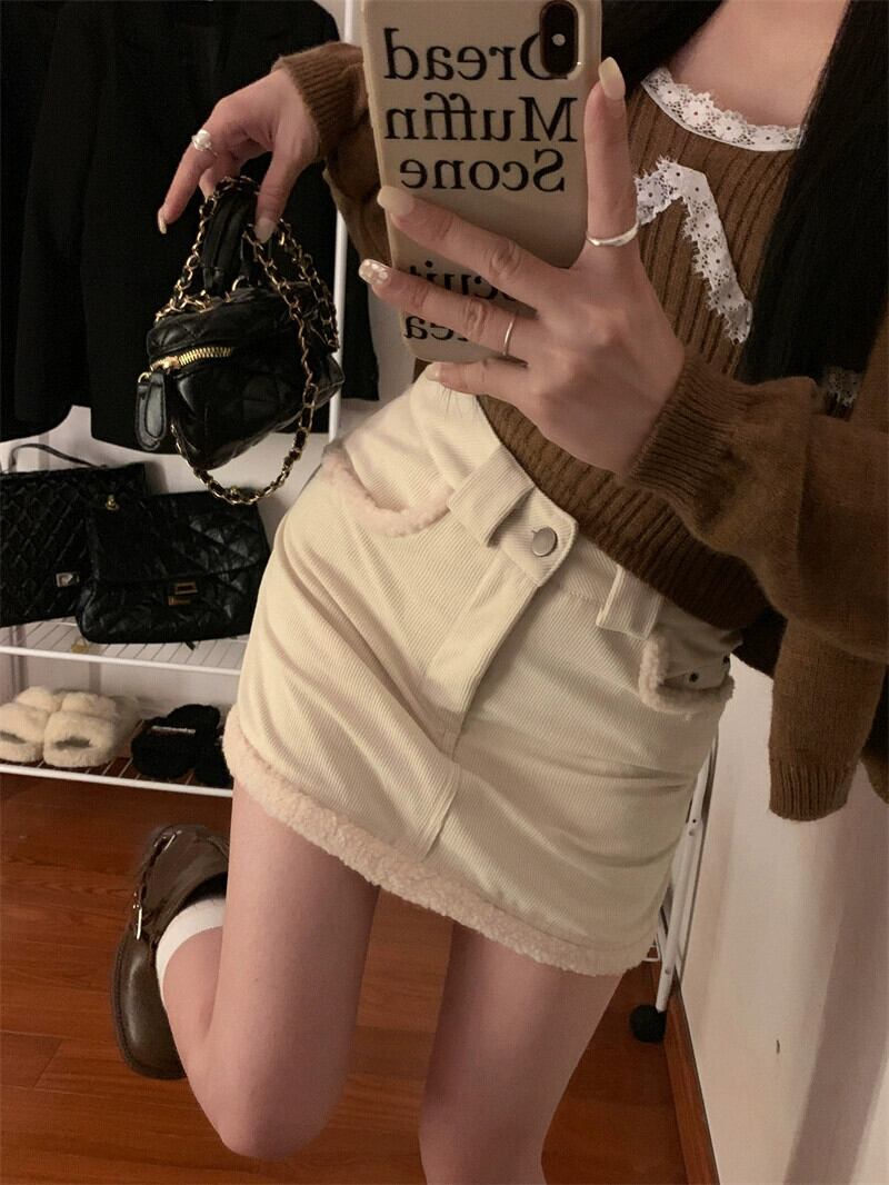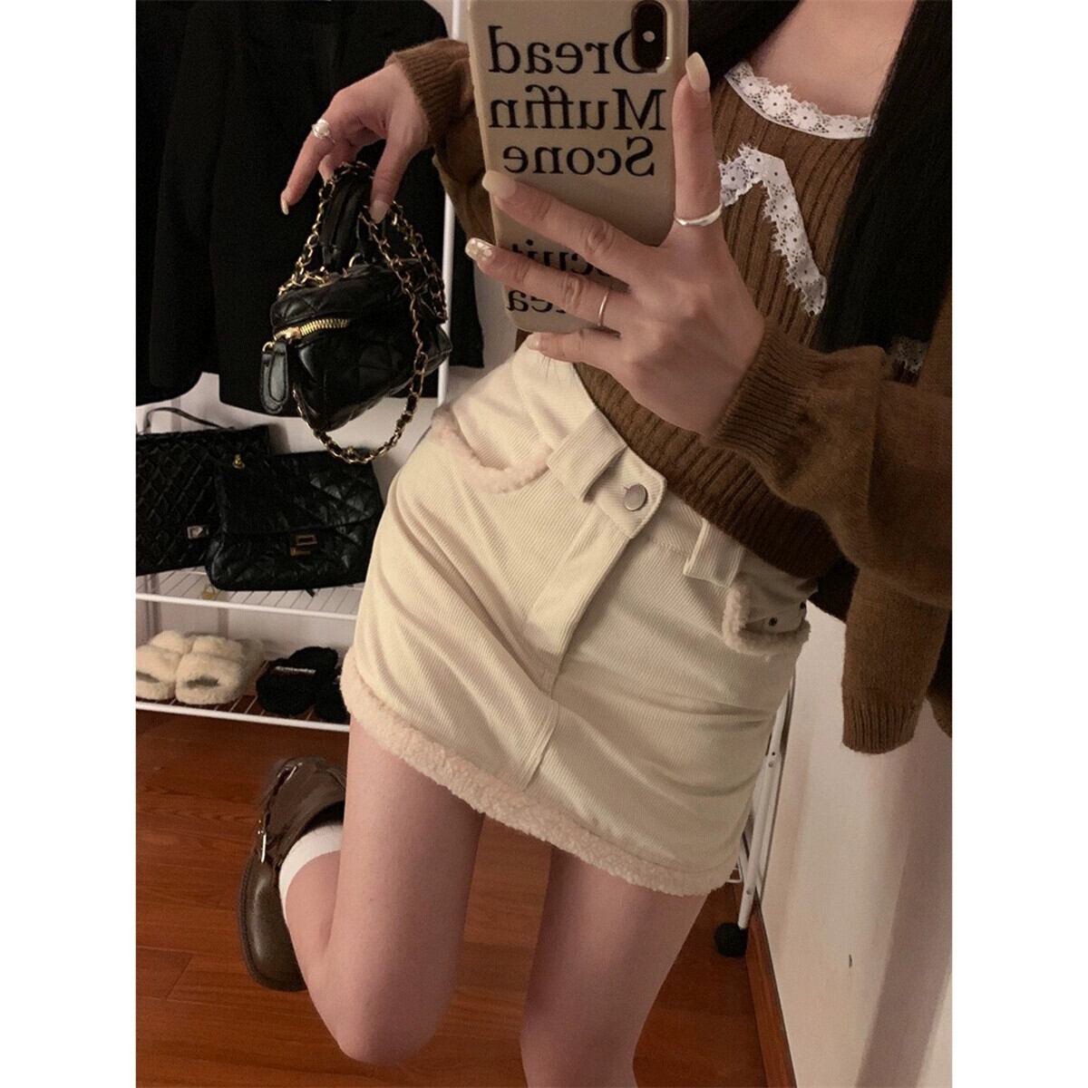 毛皮のようなステッチコーデュロイスカートの女性の春と秋バージョン 2024 新しいハイウエストスリムヒップカバーショートスカート スプリング 春物 オータム 秋物 missk50173405373