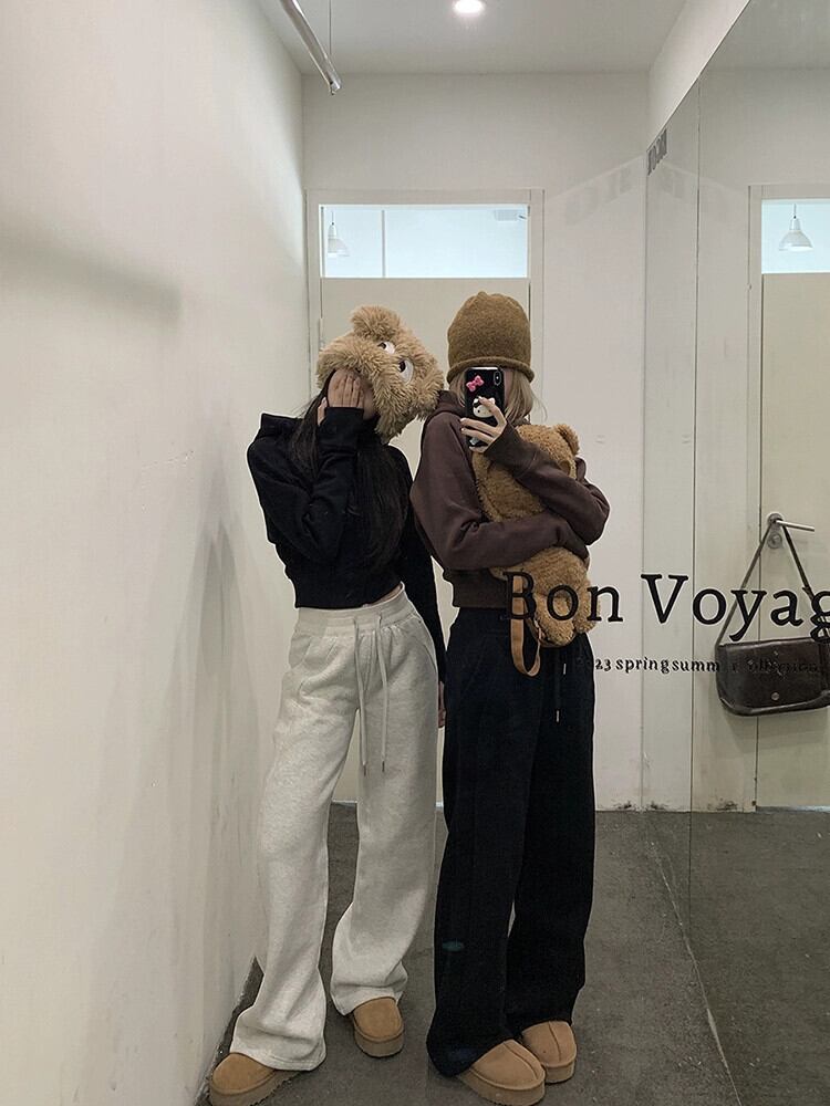 ベルベットと厚みのあるカジュアルパンツの女性、春秋バージョン 2024 新しいハイウエストスリムスポーツスタイルワイドレッグストレートパンツ スプリング 春物 オータム 秋物 missk77045101982