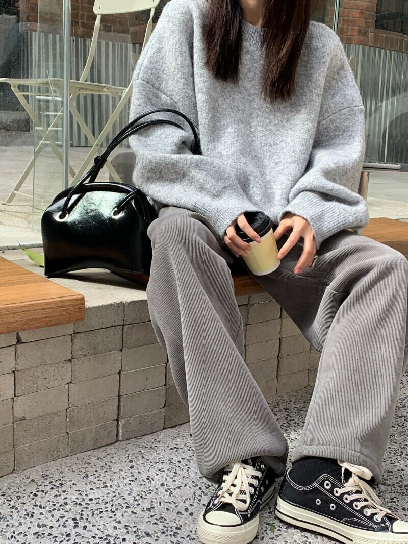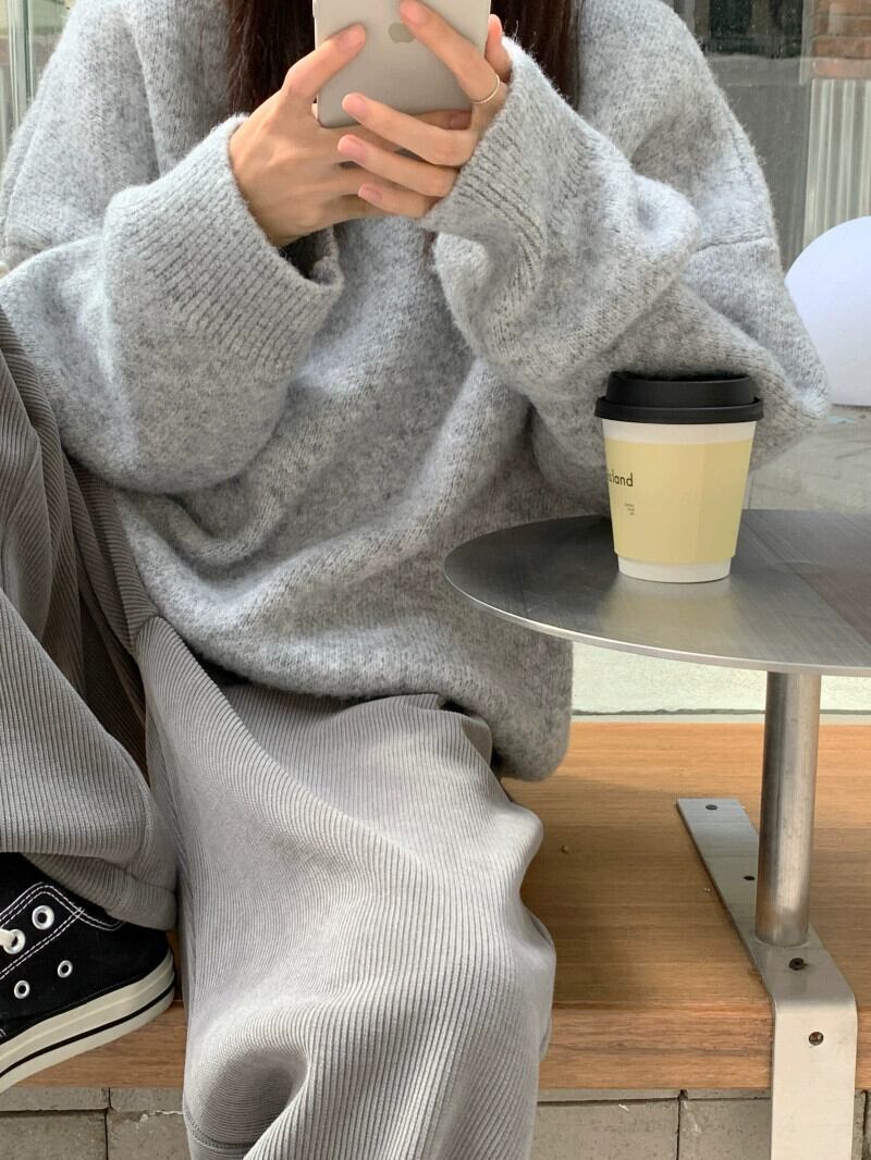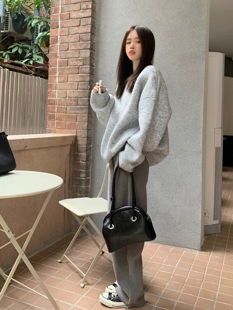 怠惰なスタイルのグレーのセーターの女性の春と秋 2024 新しいスタイルのカジュアルなルーズ多目的プルオーバー肥厚トップ スプリング 春物 オータム 秋物 missk83496314637