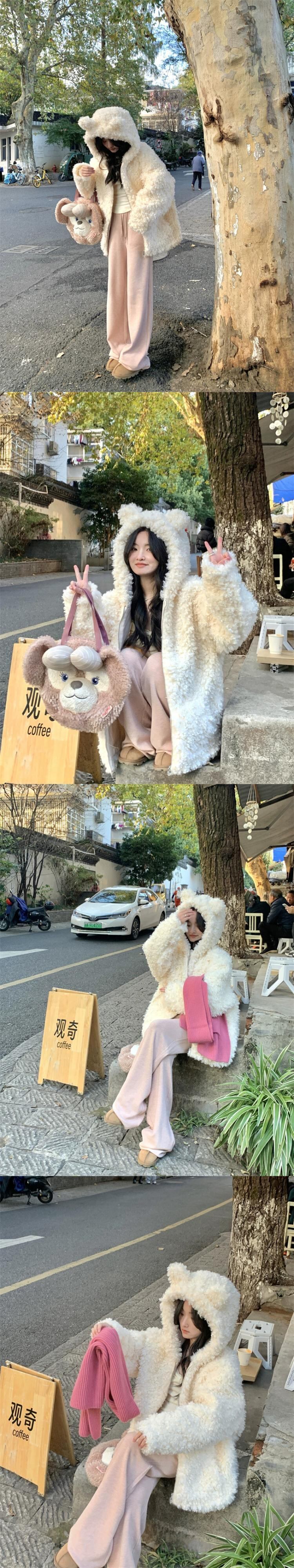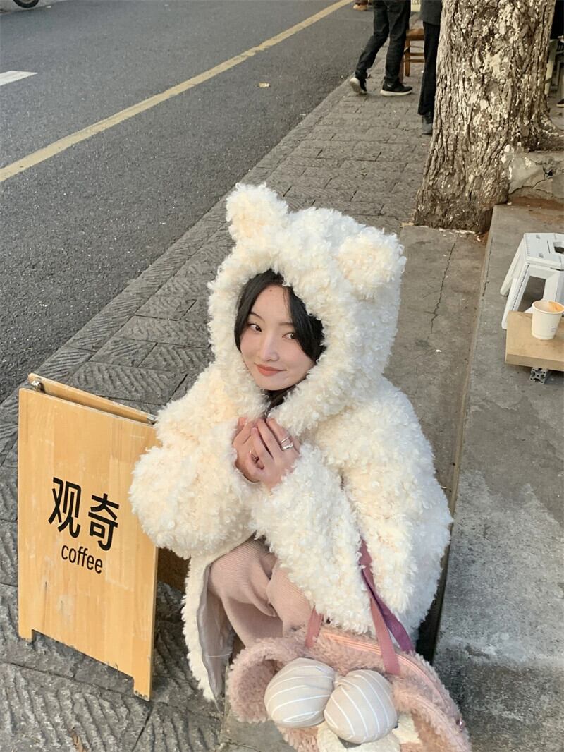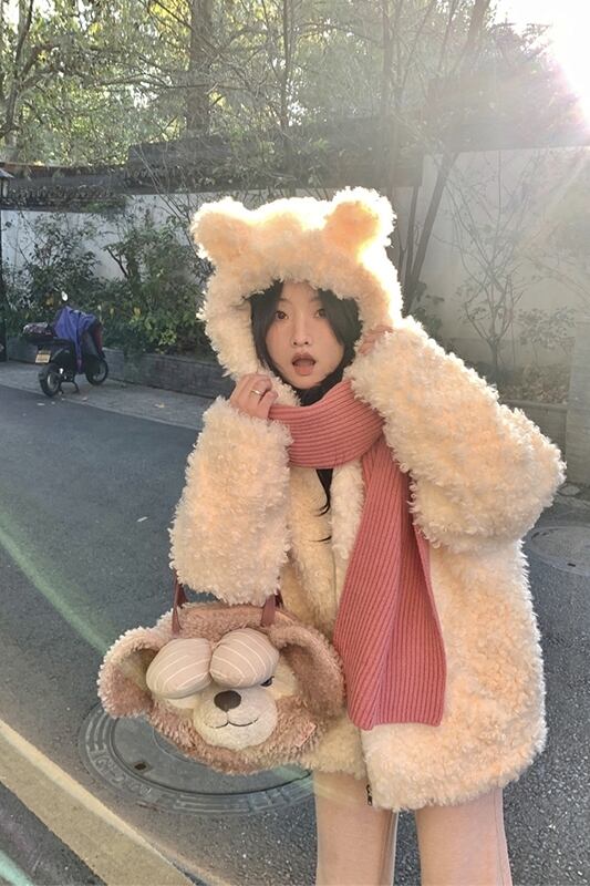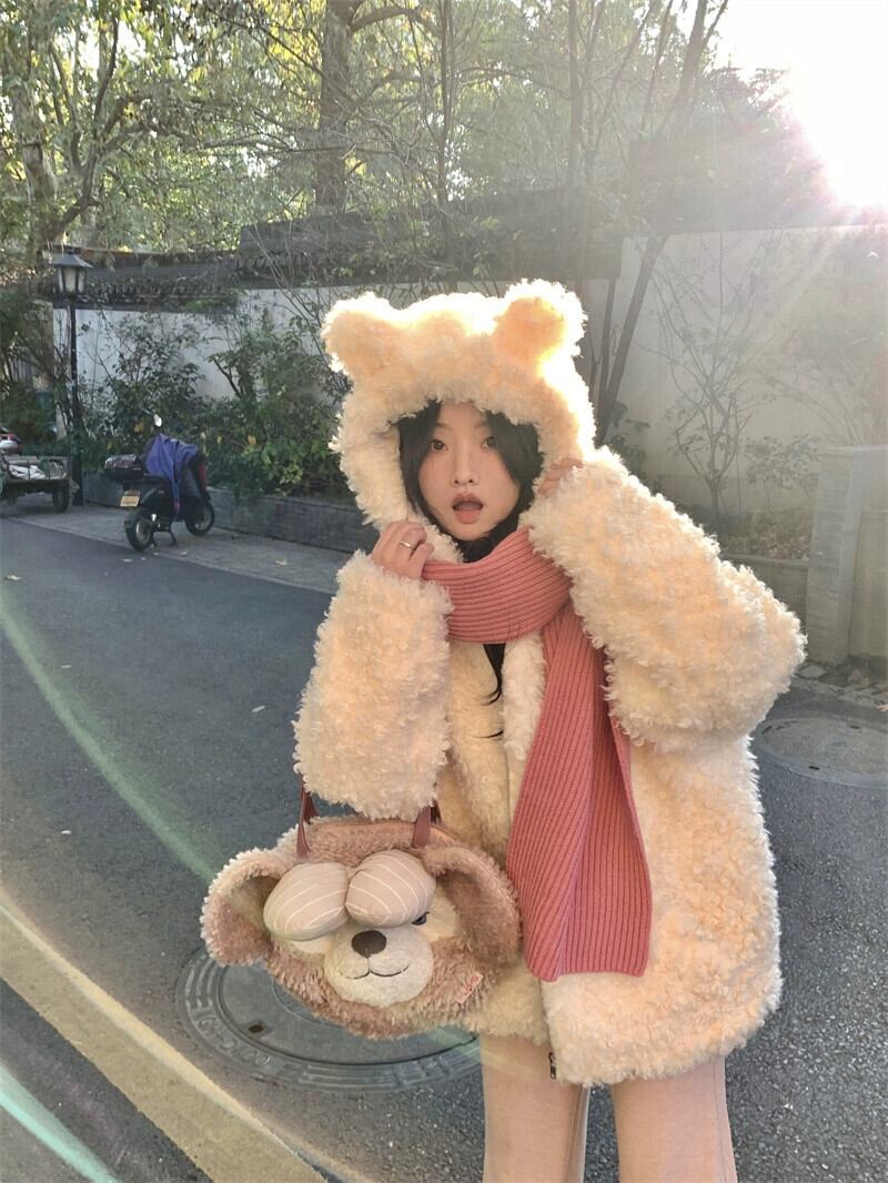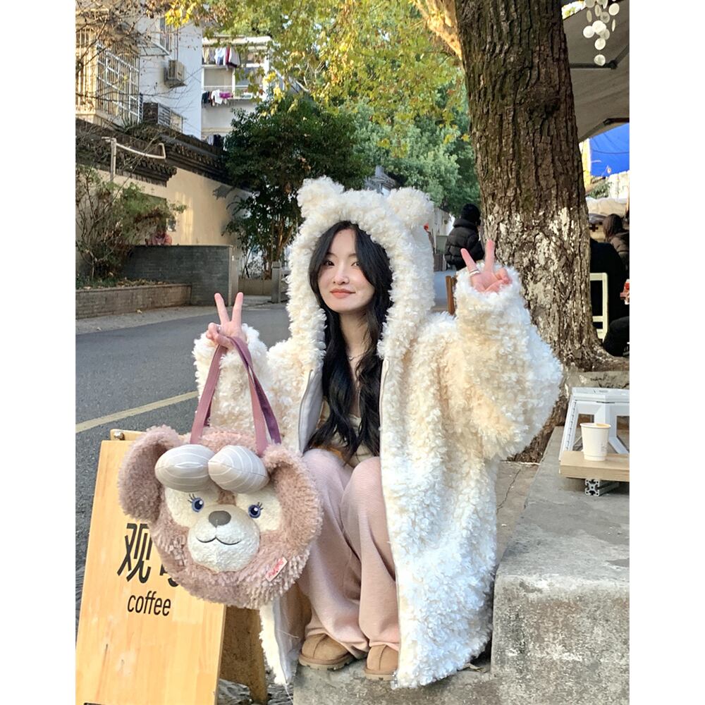 Sweet Wind カーリーコート 2024 春と秋 暖かい厚みのあるジャケット 老化防止 クマ フード付きトップ レディース 大人ガーリー スウィート キュート カジュアル スプリング 春物 オータム 秋物 missk21122560921