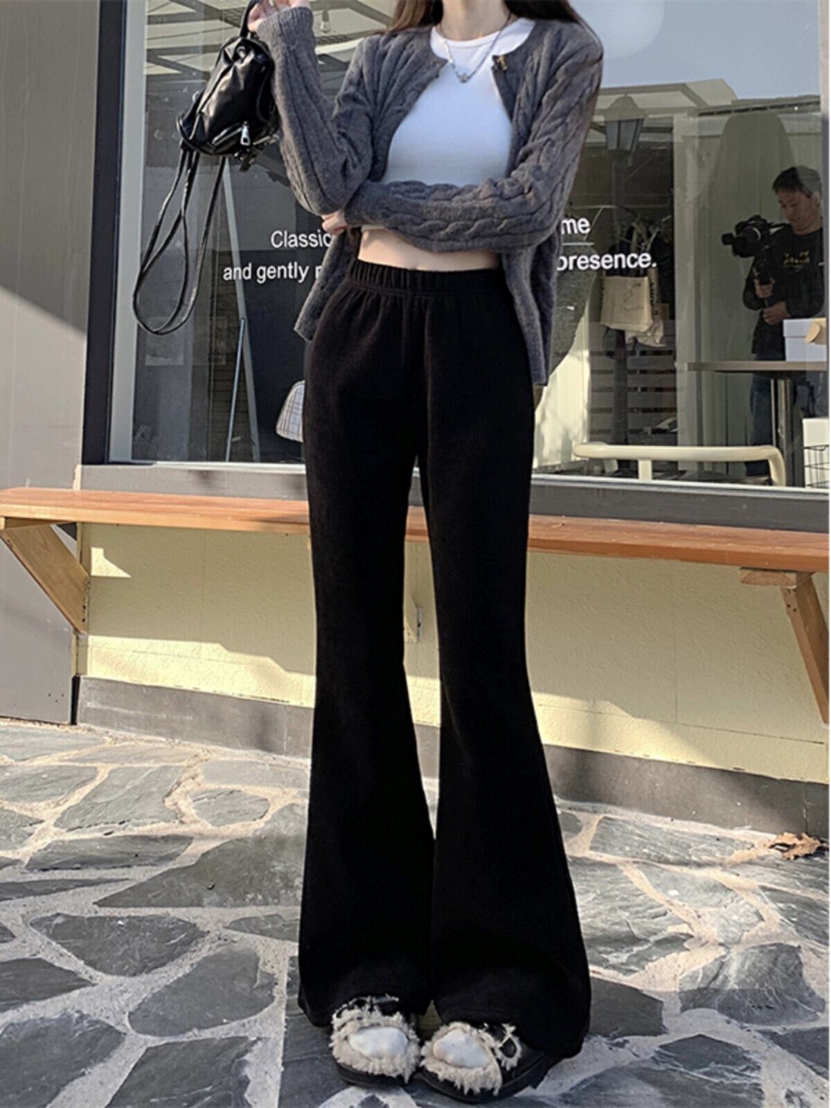 ベルベット肥厚カジュアルパンツ女性の春と秋 2024 新しいスタイルハイウエストスリムファッション多用途マイクロフレアパンツ ハイウェスト レッド スプリング 春物 オータム 秋物 missk93411361375