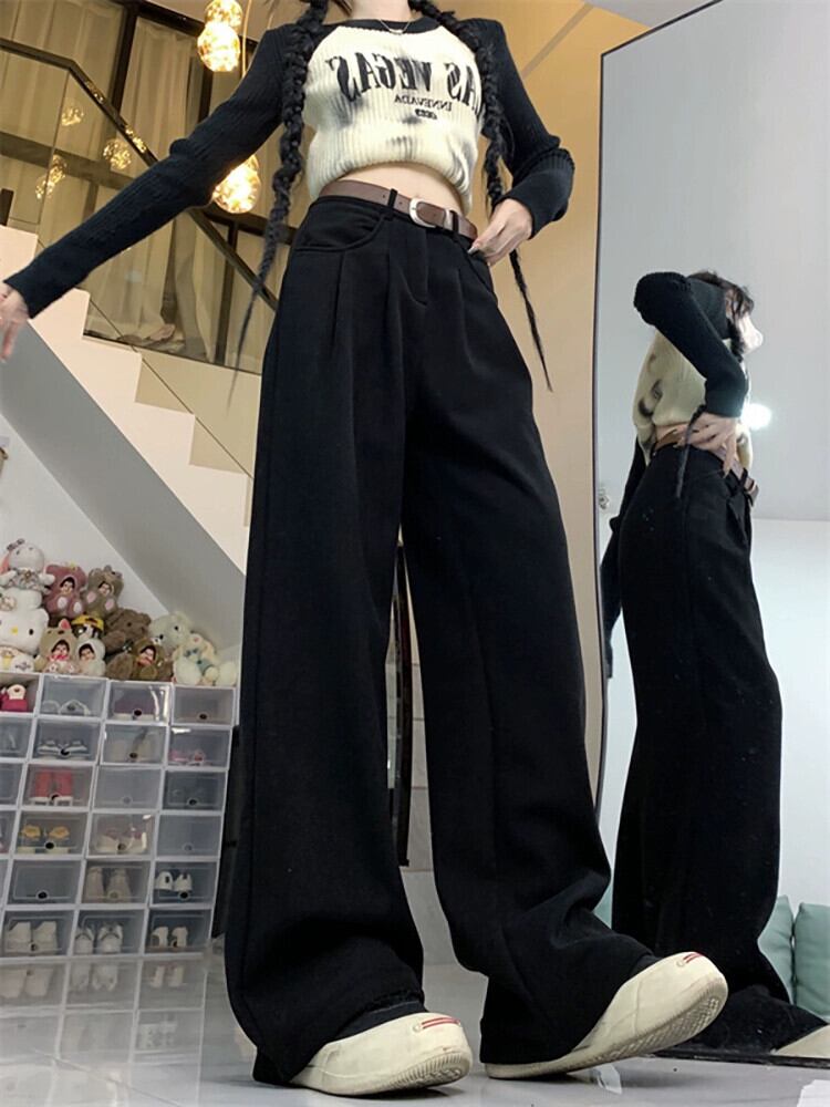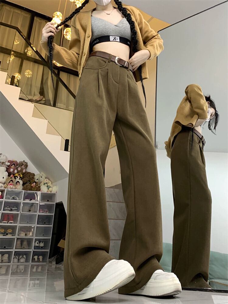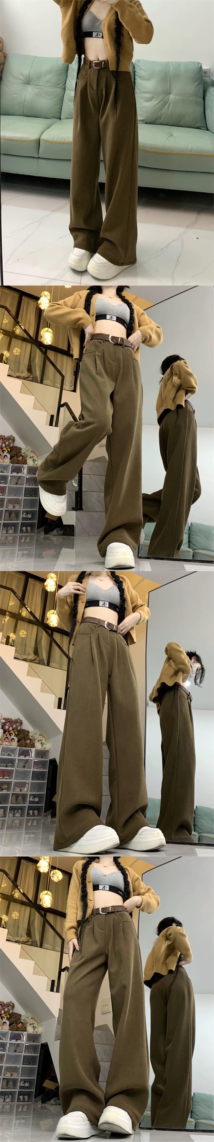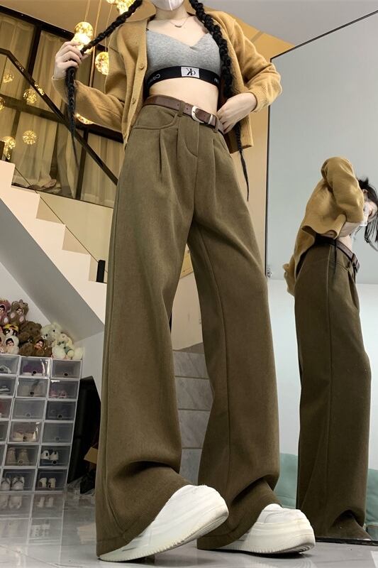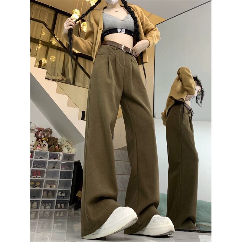 ベルベット肥厚ドレープカジュアルパンツ女性の春と秋バージョン 2024 新しいハイウエストスリムメイラードワイドレッグロングパンツ スプリング 春物 オータム 秋物 missk2615089937