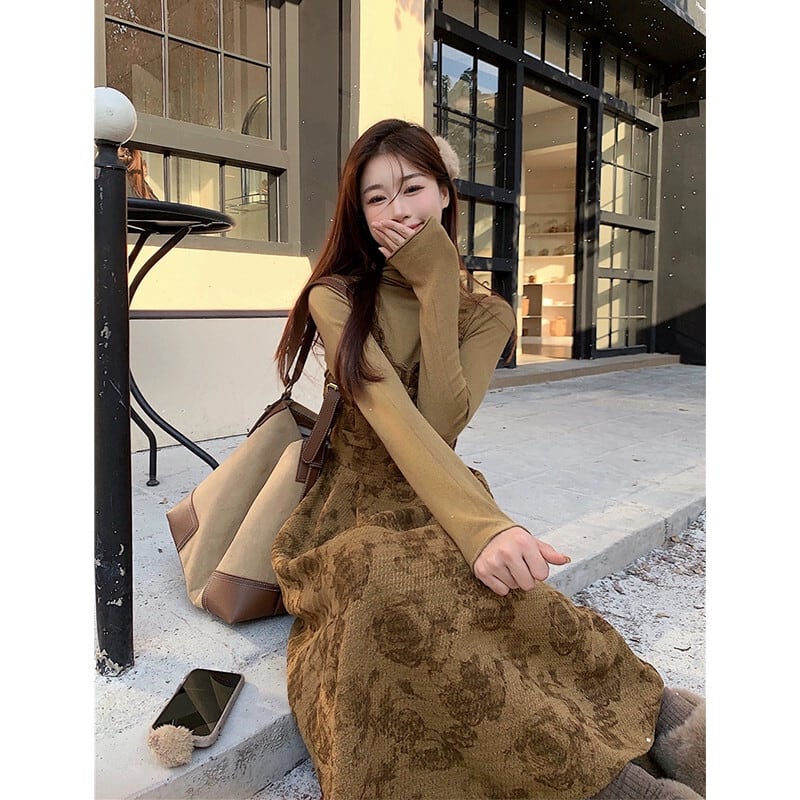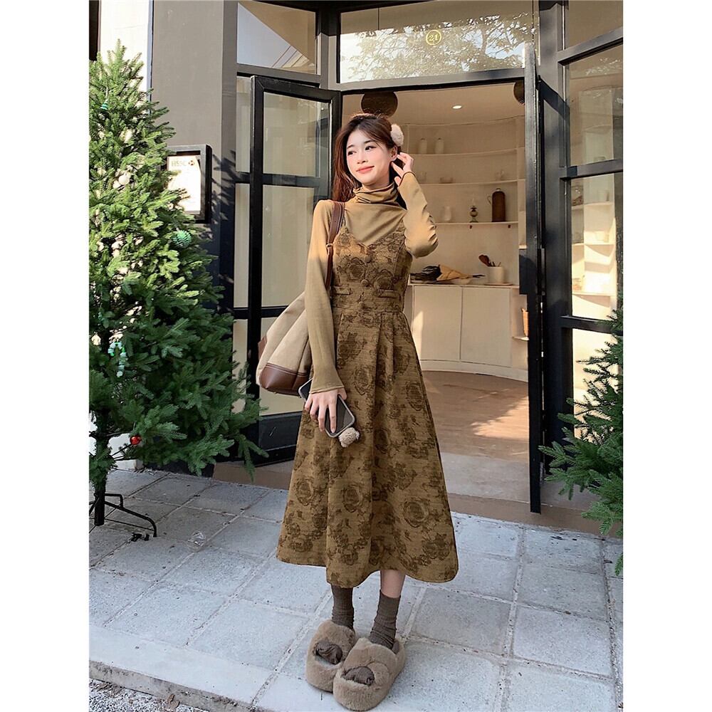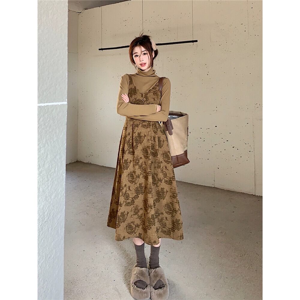 レトロな汚れた花サスペンダードレス春と秋 2024 新しいスタイルフレンチスタイルデザインハイエンドロングスカート婦人服 スプリング 春物 オータム 秋物 フラワーデザイン missk56581105487