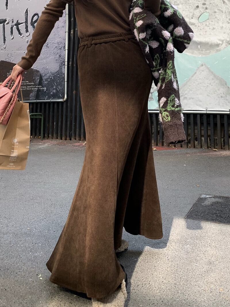 肥厚ヨーロッパ綿ベルベットピットスカート女性春 2024 新しいハイウエスト痩身ミッドレングスフィッシュテールスカートトレンディな コットン スプリング 春物 ヨーロピアン missk85526129732