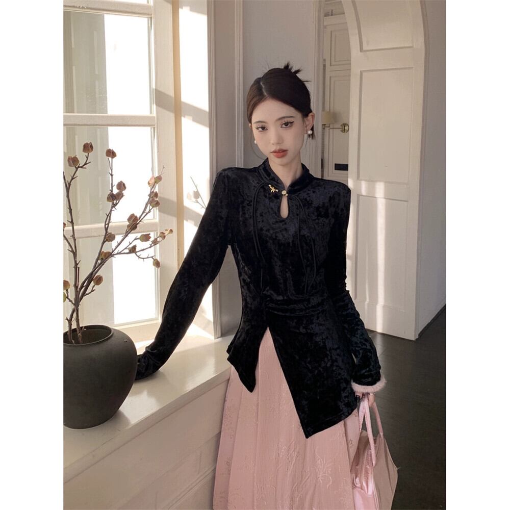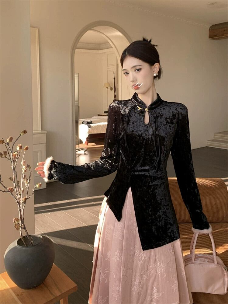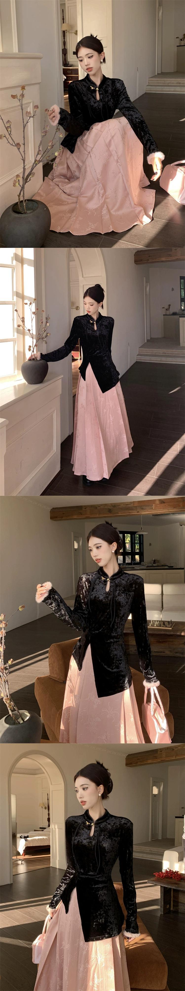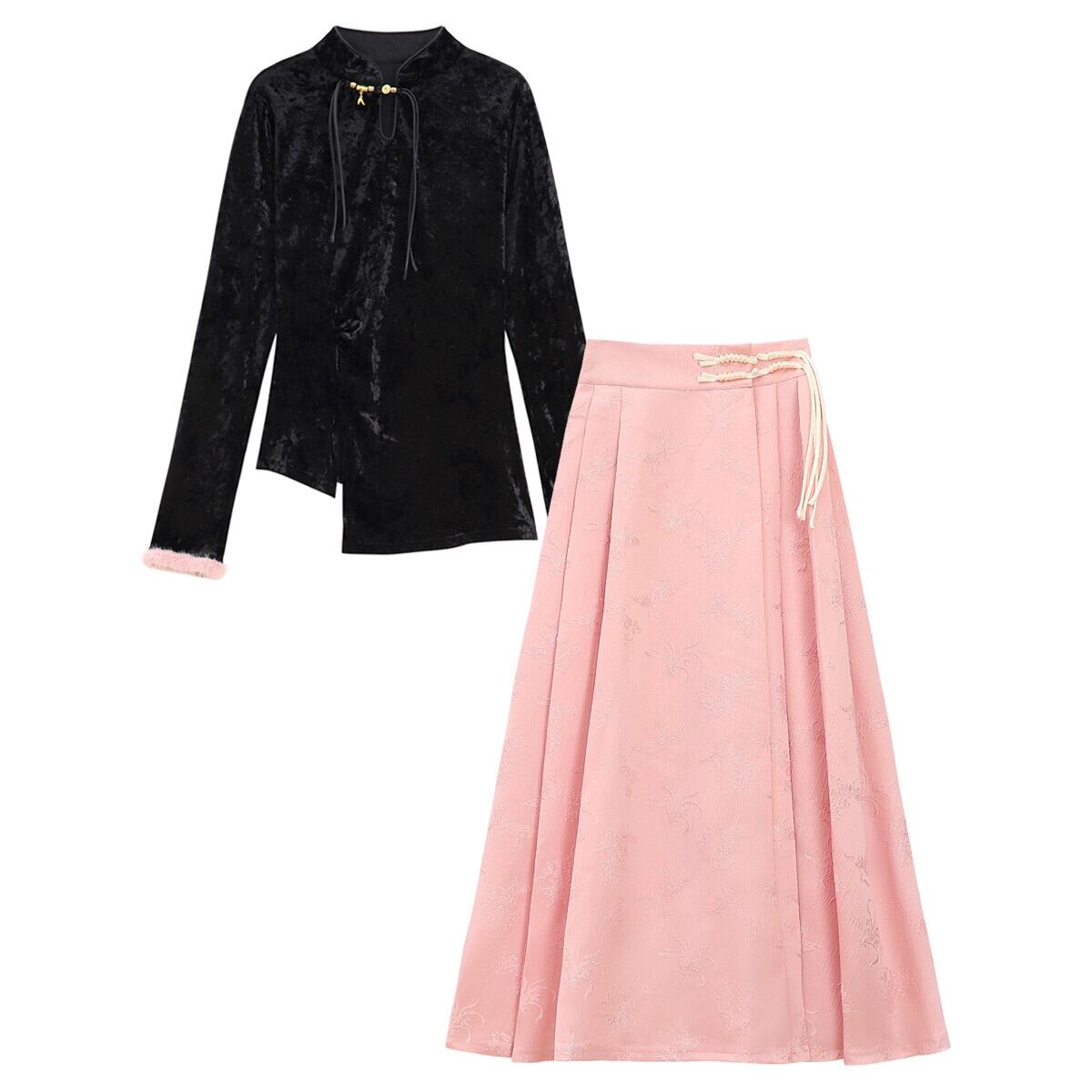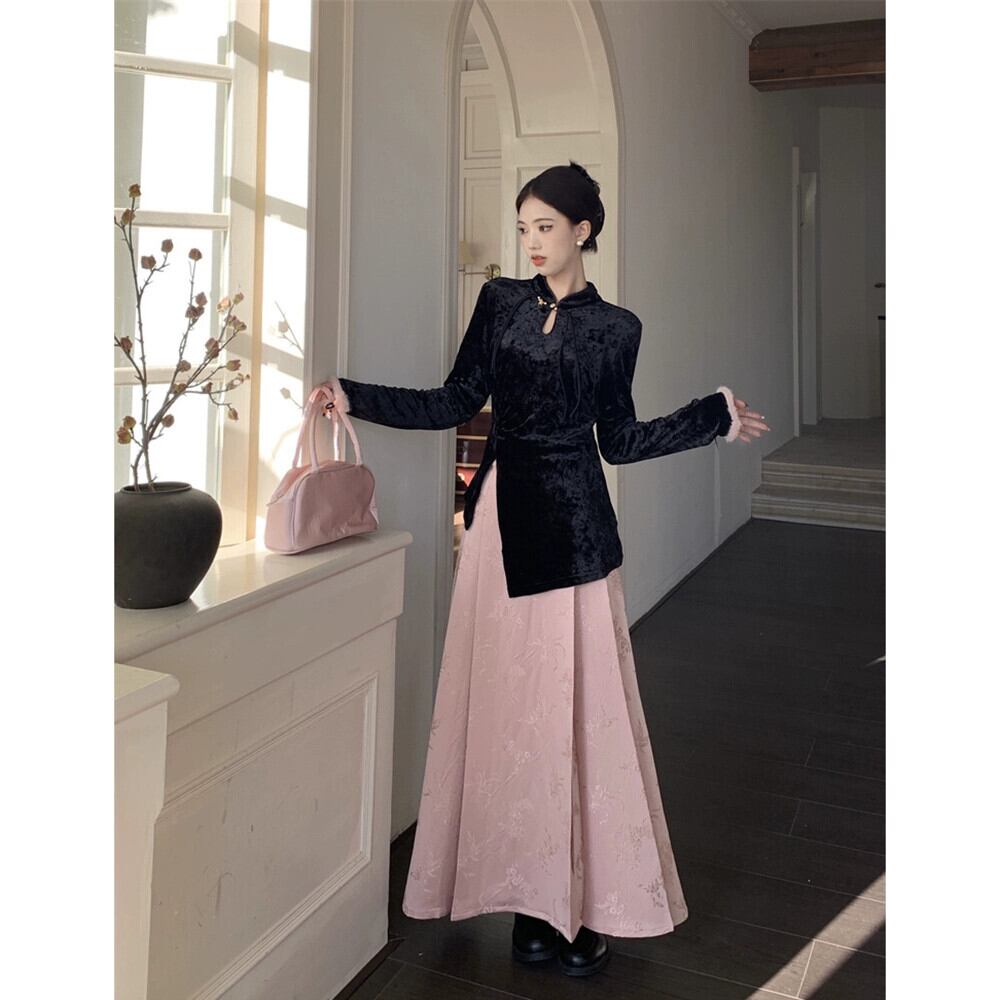 中国風のベルベットスリット長袖トップサテンジャカード馬面ロングスカート女性春と秋の 2024 新しいファッションスーツ スプリング 春物 オータム 秋物 missk94019259551