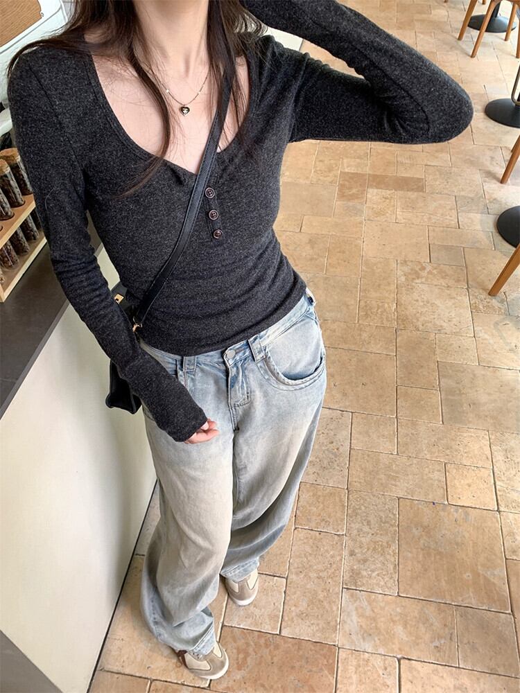 Pure Desire ホットガール スクエアネック セーター レディース 春バージョン 2024 グレー スリム スリム 長袖 ボトリング トップ ロング スプリング 春物 スクウェア missk43652833975