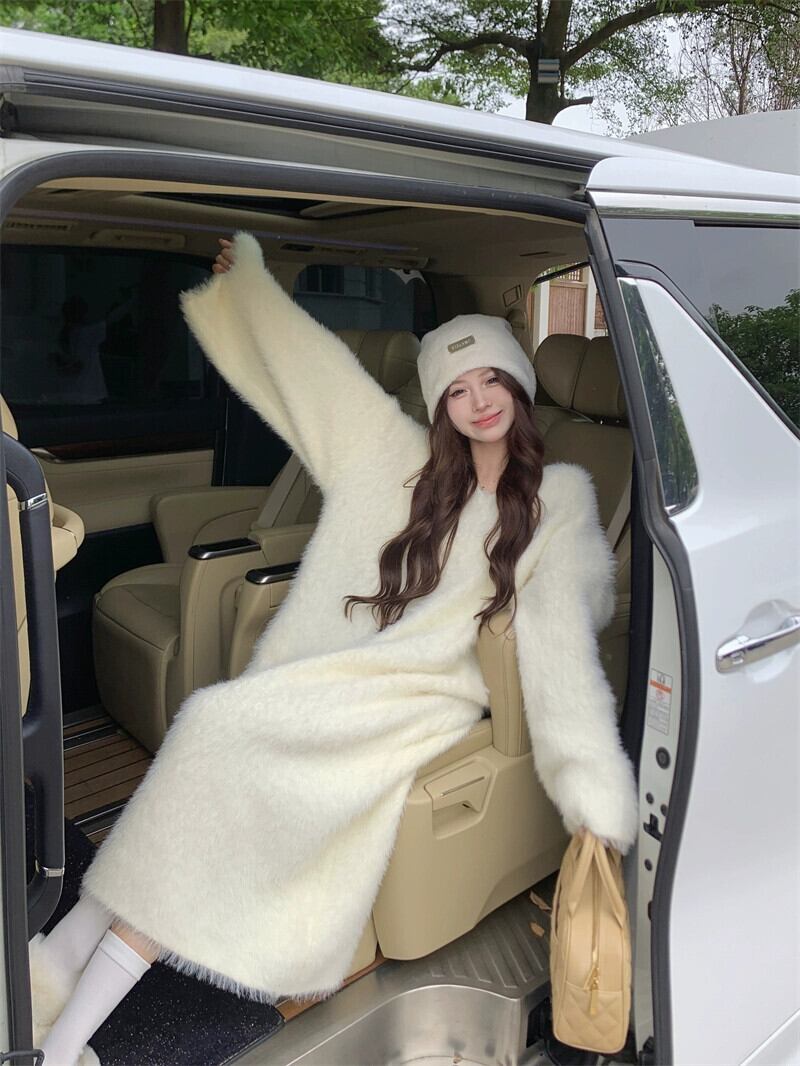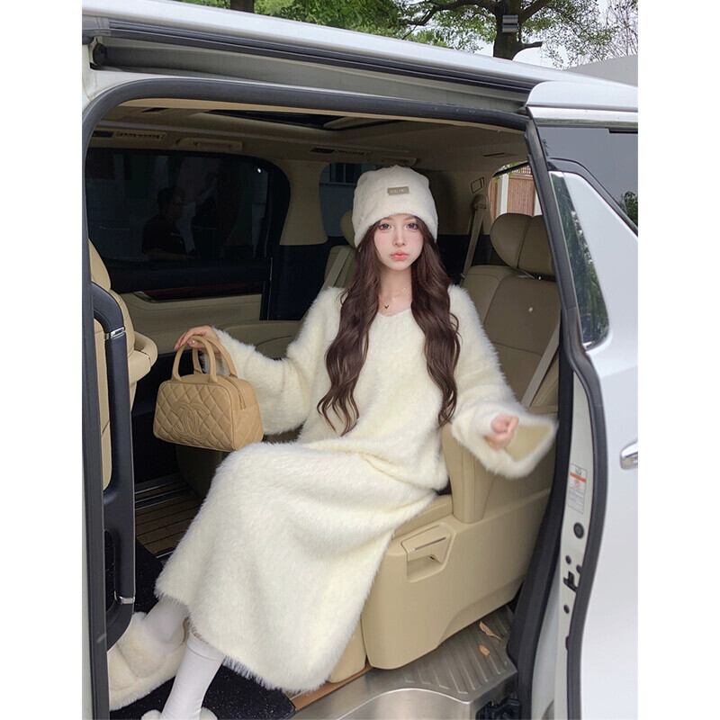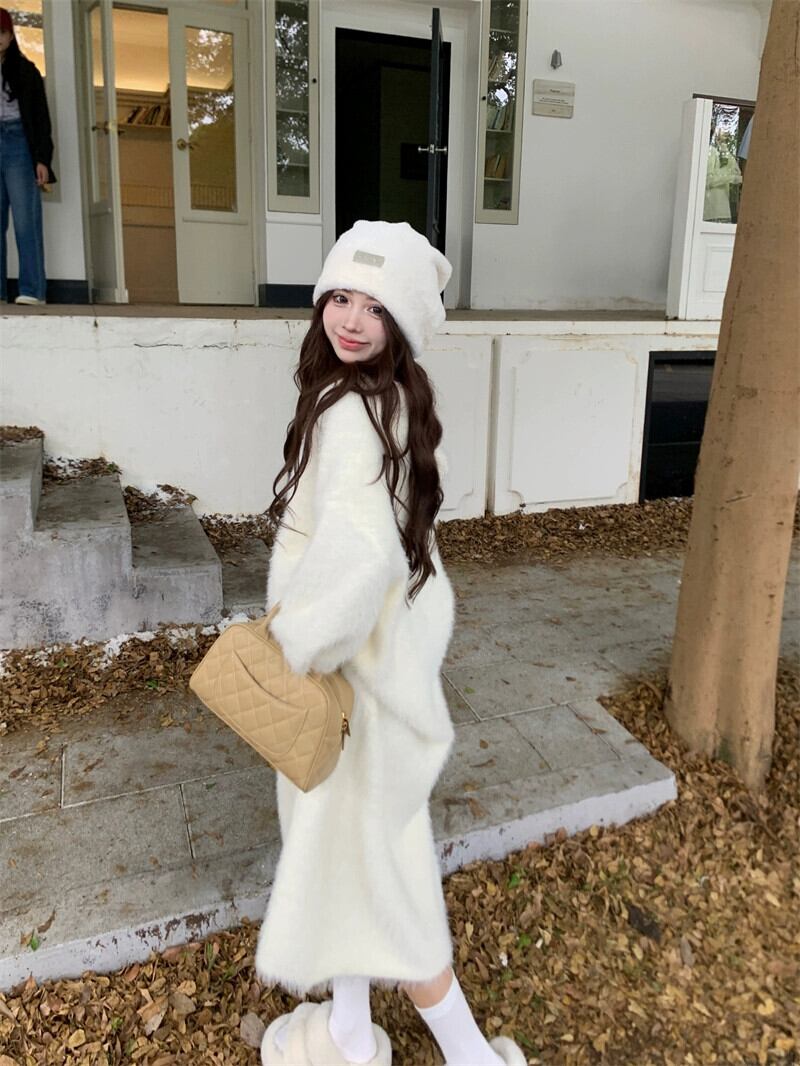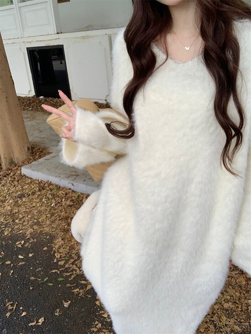 ミンクウールニットドレス女性春 2024 新しい甘い肥厚ロング膝上ルーズ長袖セータードレス 大人ガーリー スウィート キュート カジュアル スプリング 春物 missk39393877291