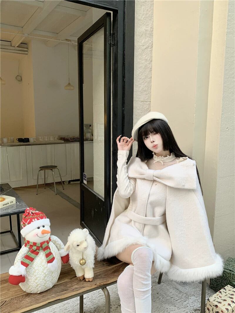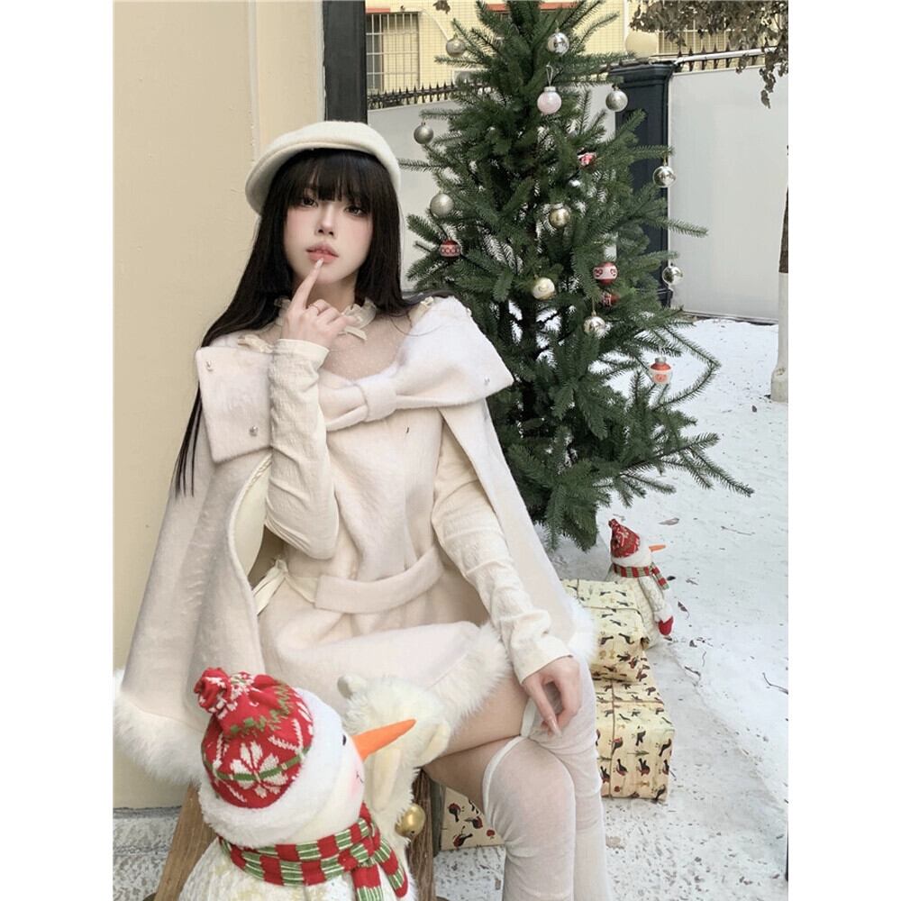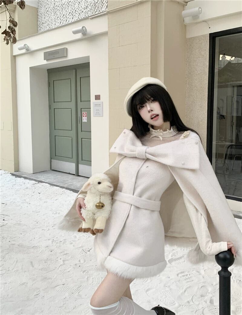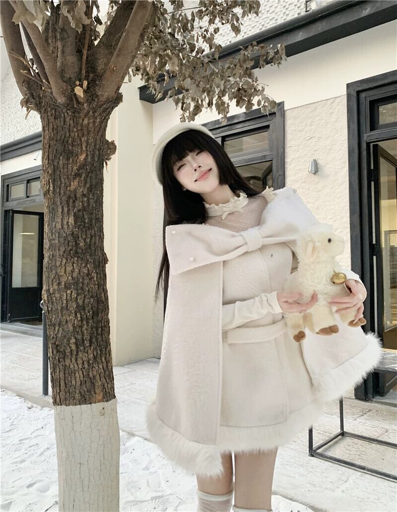Qianjinfeng ポンチョウールコート女性春 2024 新デザイン弓エレガントな気質ウールコート リボン スプリング 春物 missk12312754636