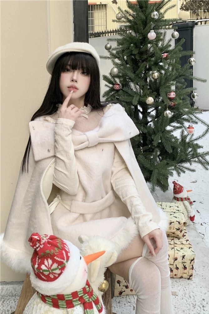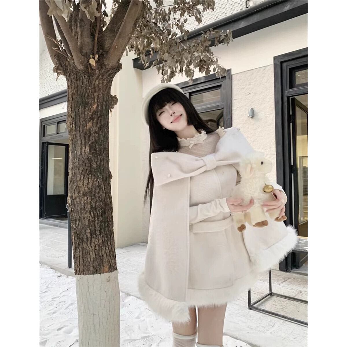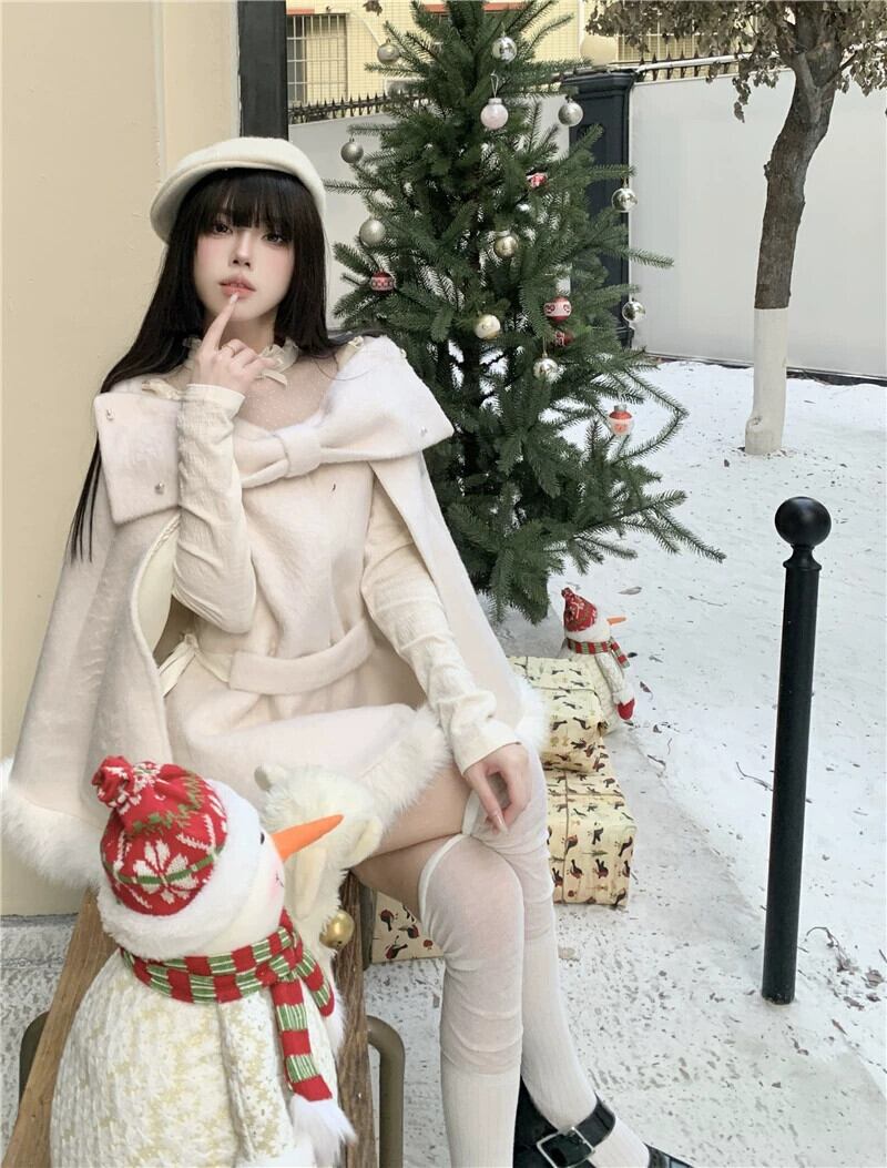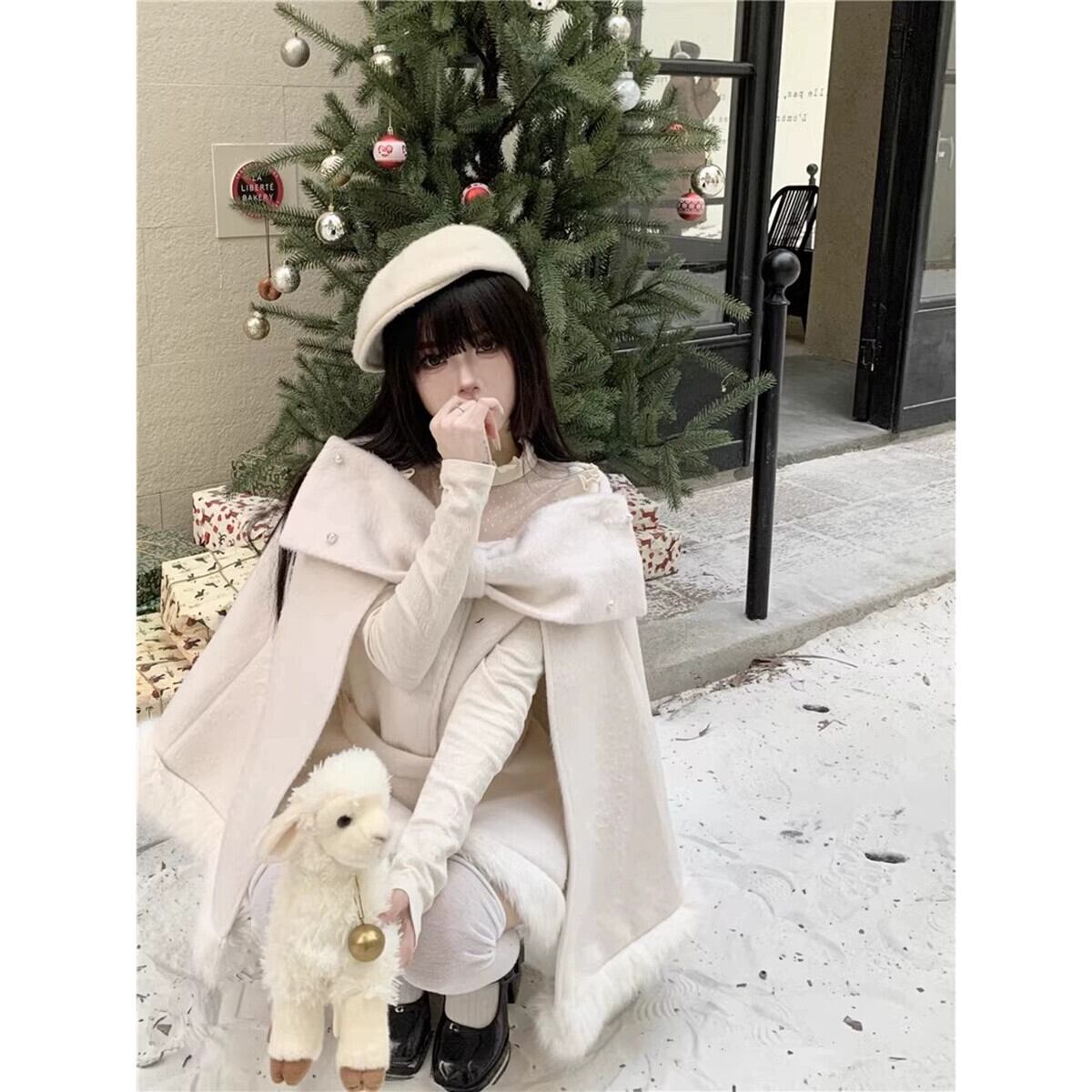Qianjinfeng ポンチョウールコート女性春 2024 新デザイン弓エレガントな気質ウールコート リボン スプリング 春物 missk12312754636