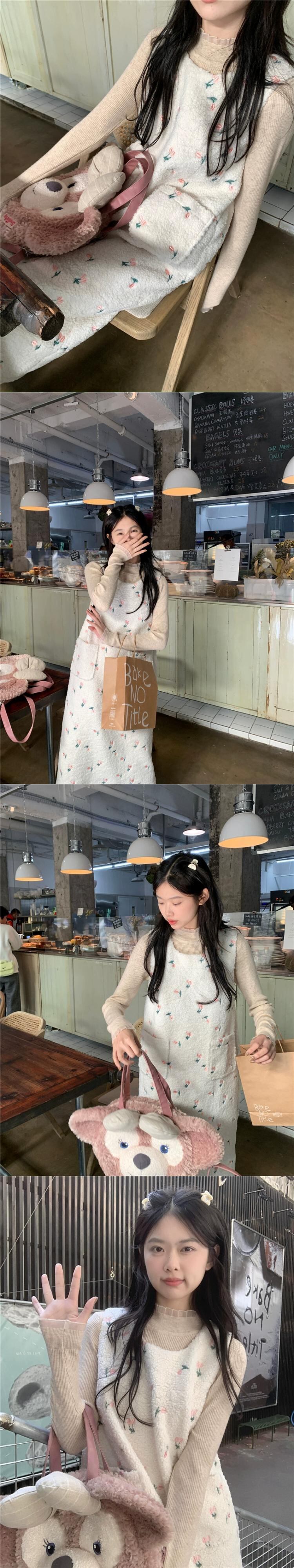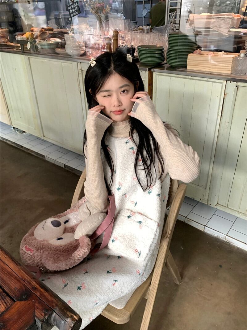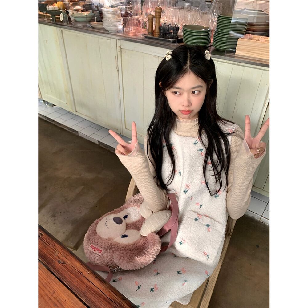 レトロ模造ラムウールのベストドレス女性春 2024 新しいスタイルのハイエンドの花刺繍気質ロングスカート レッド スプリング 春物 花柄 missk31136663684