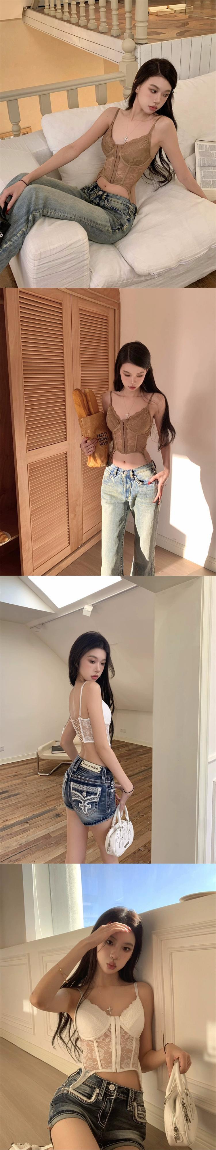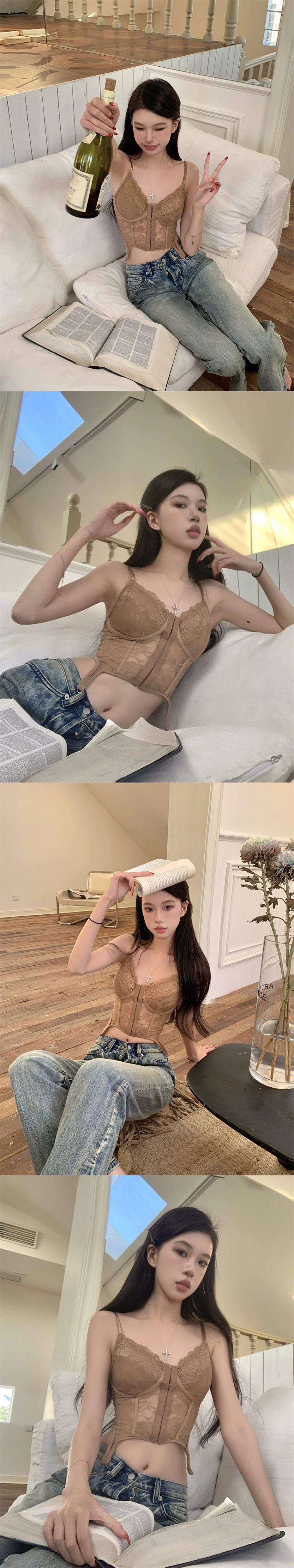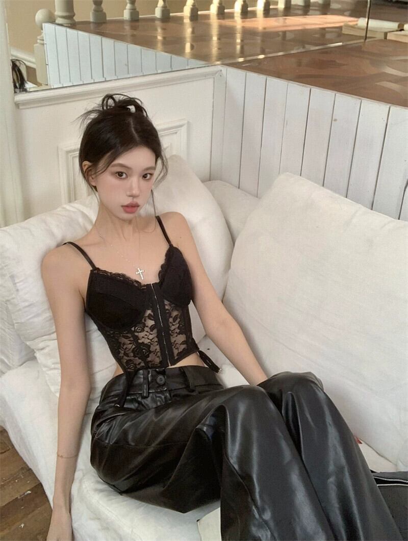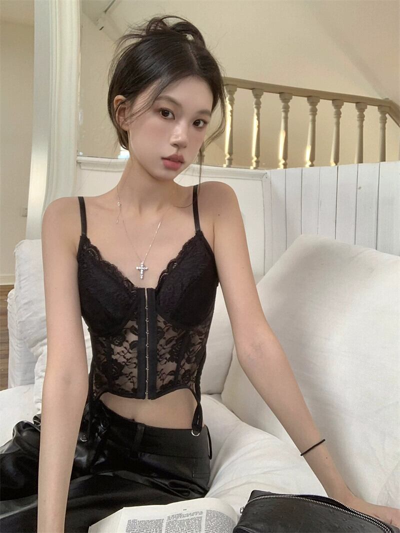 ホットスタイルのレースベストサスペンダー 2024 春と秋の新しいスタイルのウエストを締める、ファッショナブル、セクシー、スリム、多用途なボトムトップス女性 スプリング 春物 オータム 秋物 missk14893514348