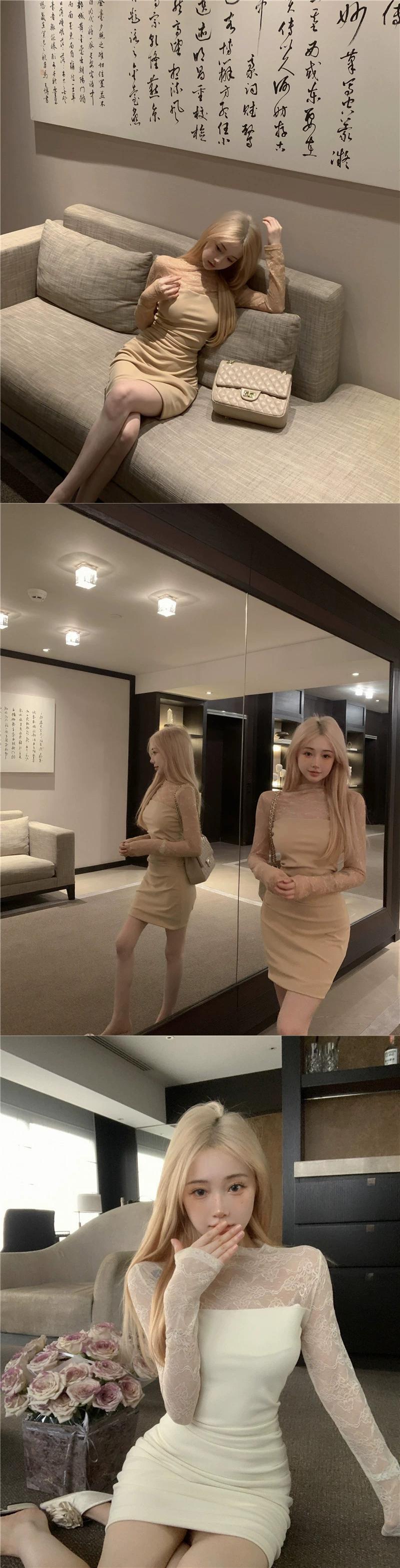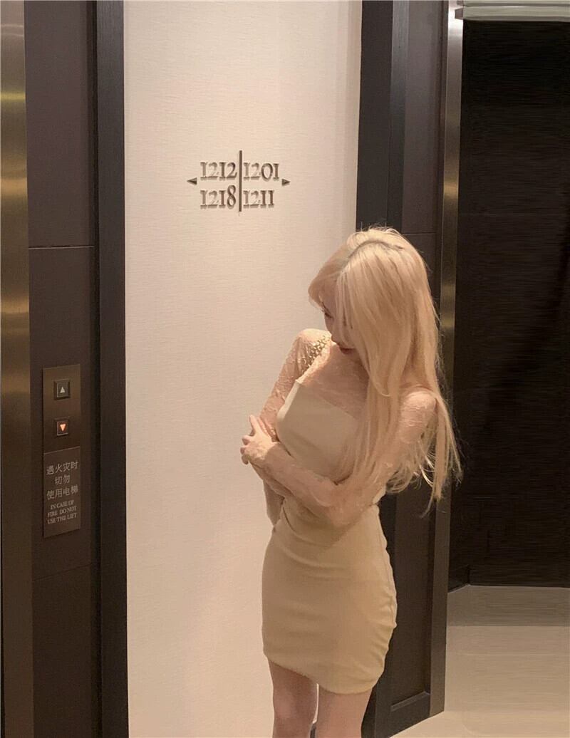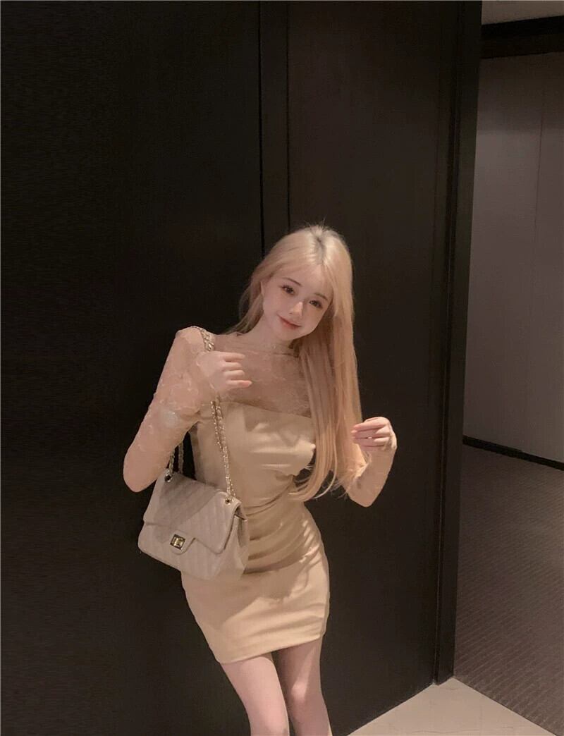 レーススプライシングニットドレス女性の春 2024 新しいフランスの純粋な欲望スリムセクシーな長袖ヒップスカート ロング スプリング 春物 ピュア missk43208946009