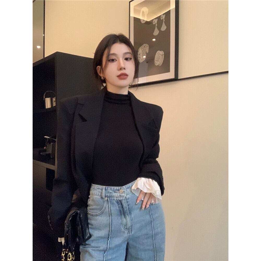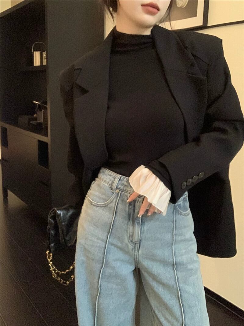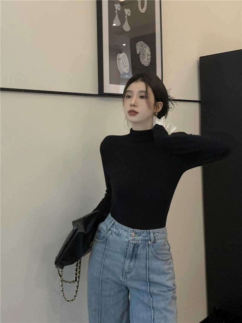 ハーフタートルネック長袖セーター女性春の新レトロスリムデザイン対照的な色暖かいプルオーバーボトミングトップ ロング スプリング 春物 missk72051996827