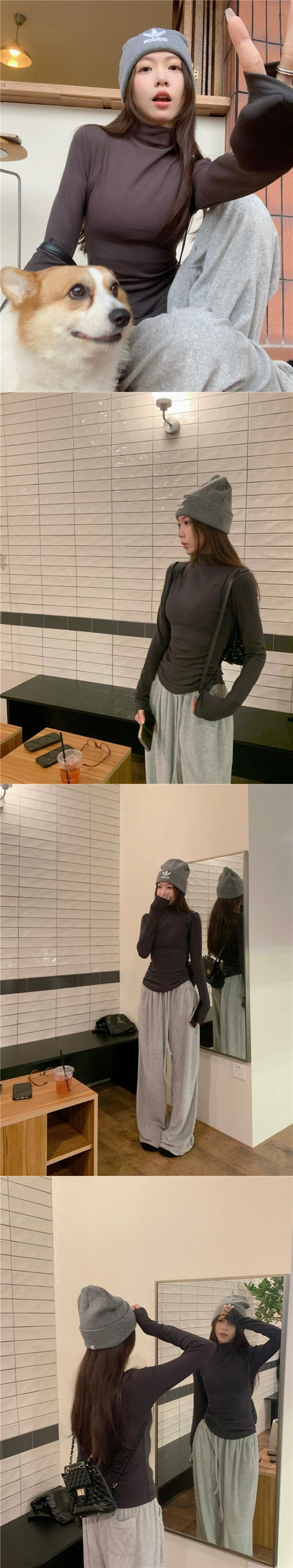 ドイツのベルベットのハイネック T シャツの女性、春と秋のバージョン 2024 の新しいスリム フィット、暖かい起毛インナー長袖ボトム シャツ ロング スプリング 春物 オータム 秋物 Tシャツ missk93969510791