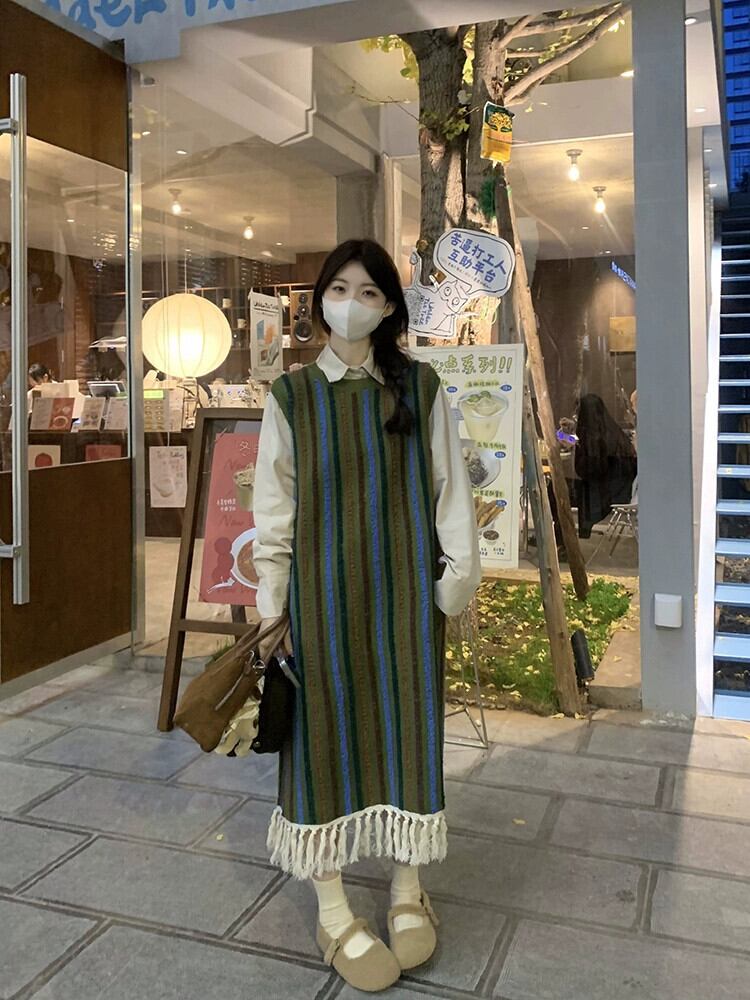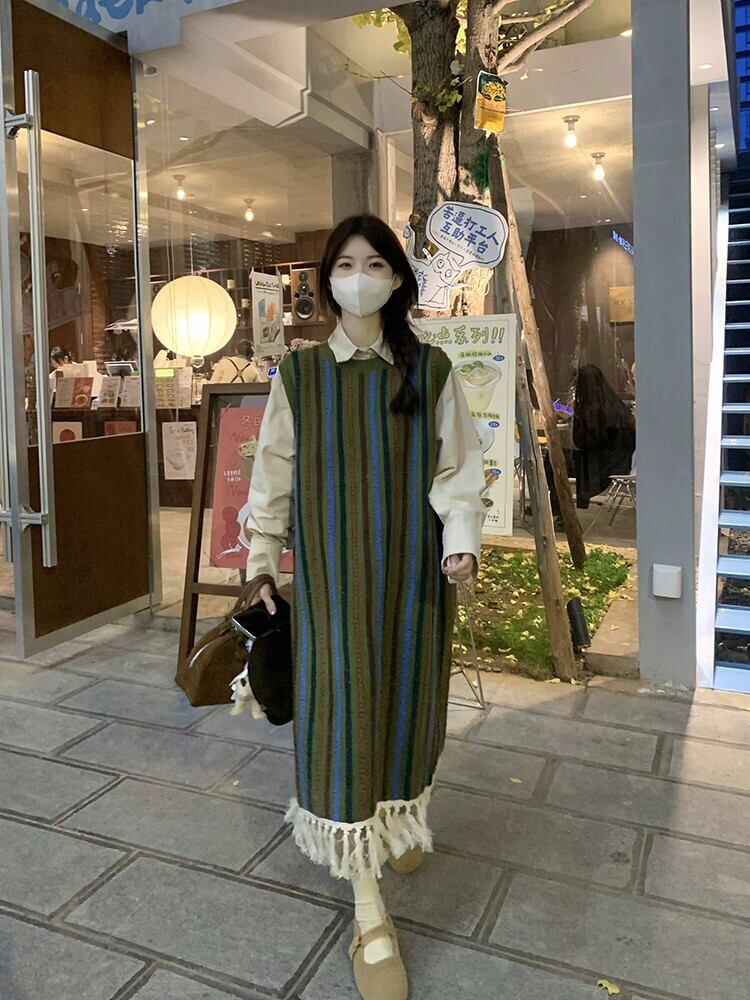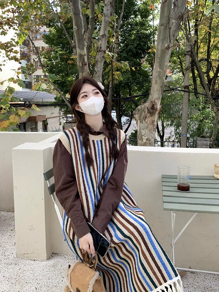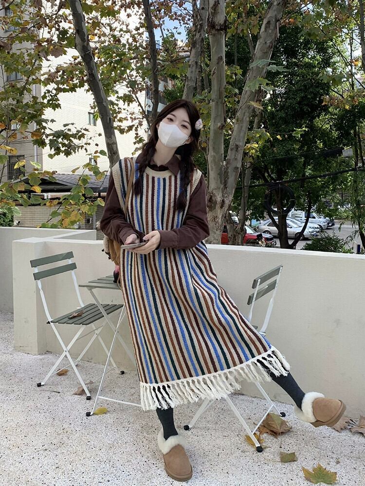 レトロストライプテルニットドレス女性の春と秋 2024 スリムミッドレングスベストスカート スプリング 春物 オータム 秋物 missk83065189162