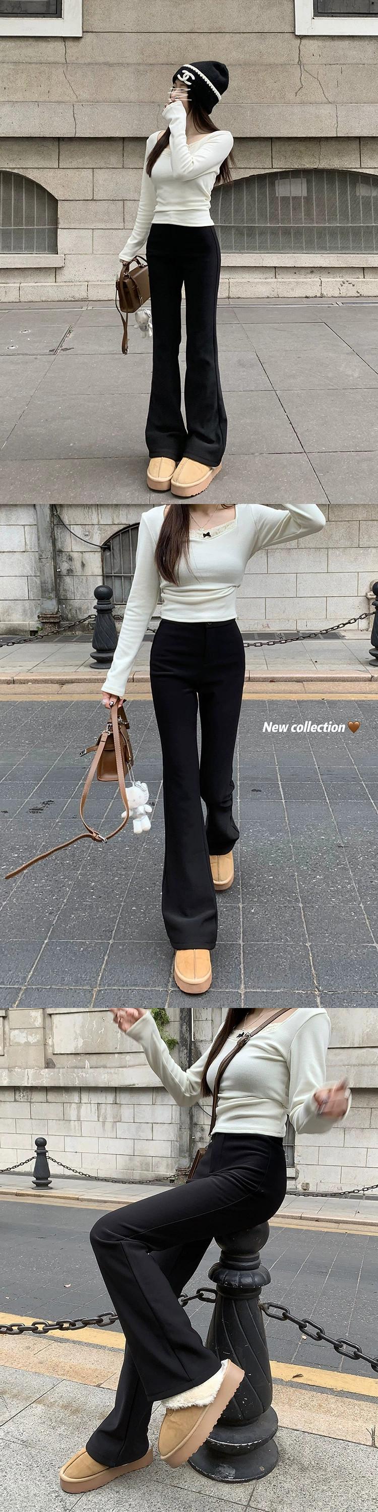 ベルベット肥厚ブーツカットパンツ女性、春と秋のズボン 2024 新しい黒馬蹄パンツ、スリミングハイウエストカジュアルパンツ ブラック スプリング 春物 オータム 秋物 missk32371649846