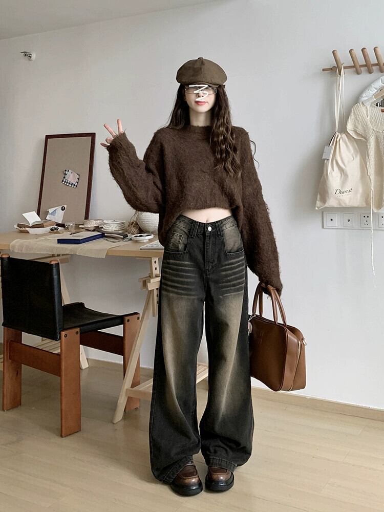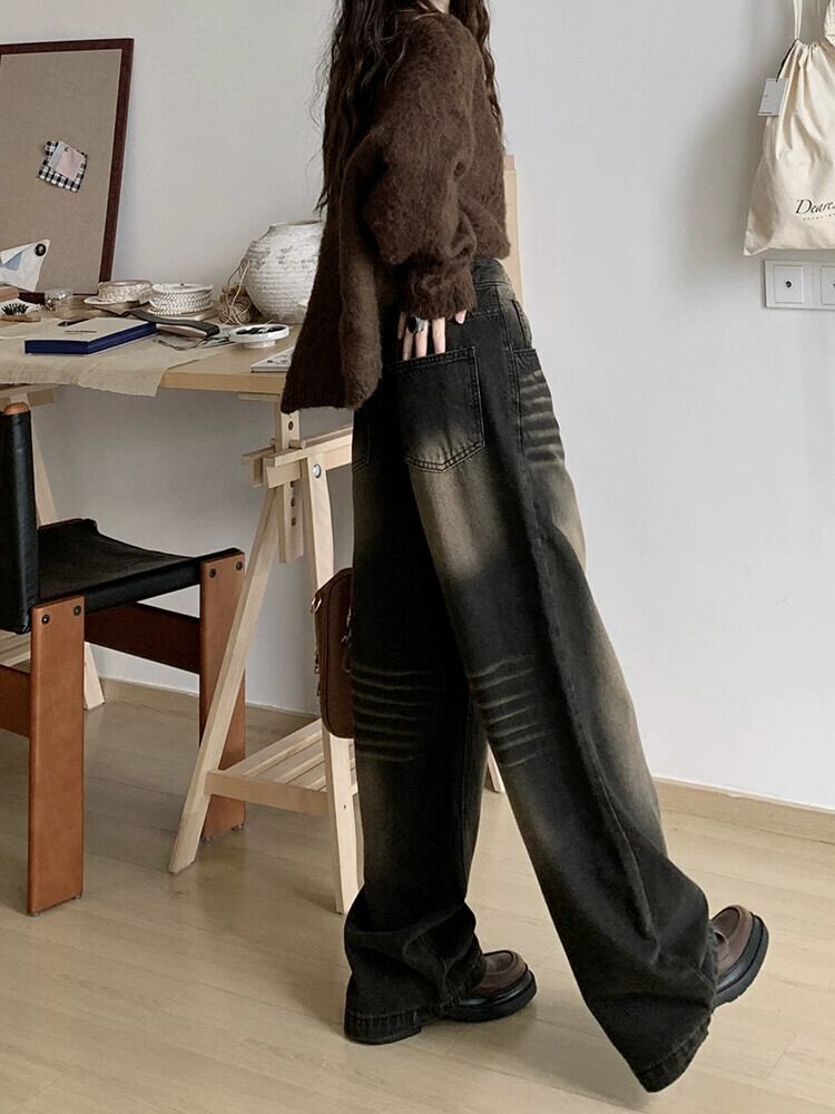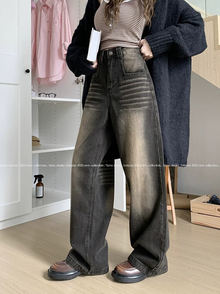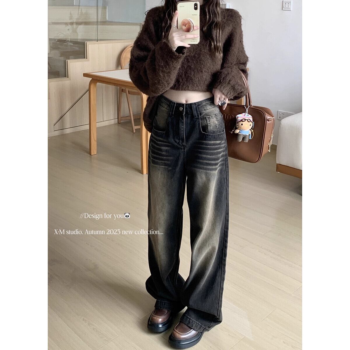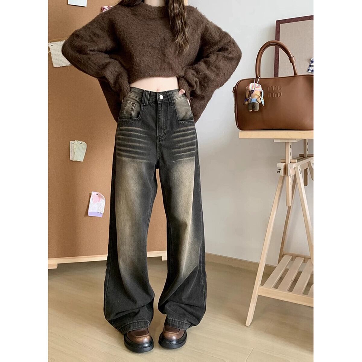 グラデーションカラーワイドレッグジーンズ女性春と秋2024新しいアメリカンレトロハイウエストスリムストレートフロアレングスパンツ スプリング 春物 オータム 秋物 missk84418153326
