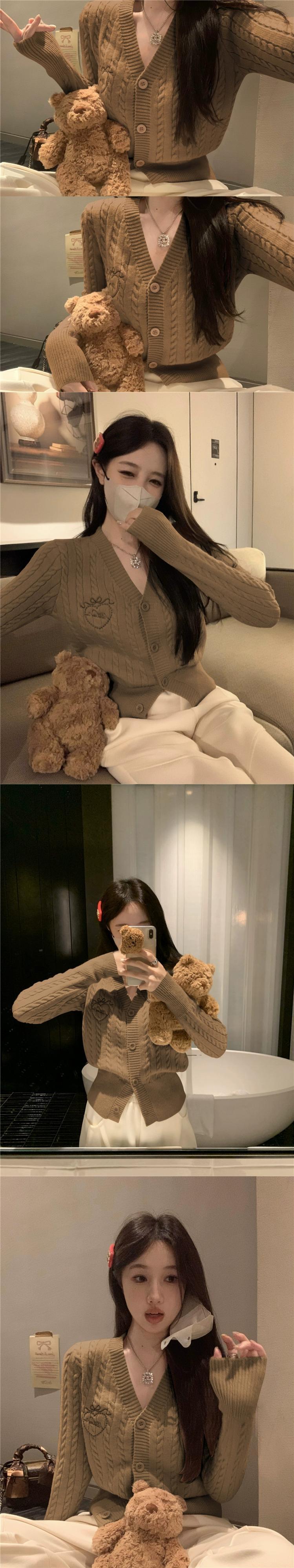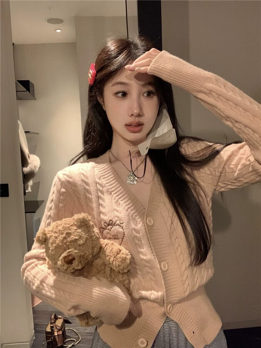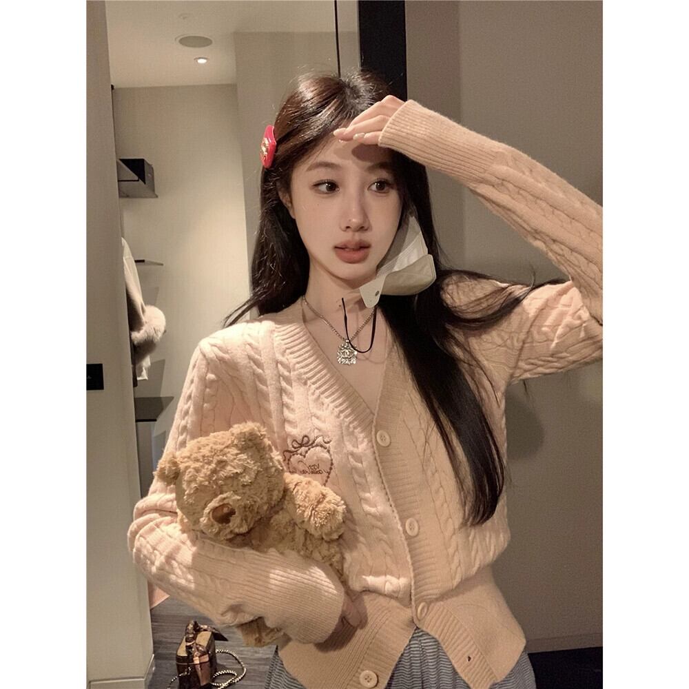 スタイル刺繍 V ネックツイストセーターカーディガン女性春と秋 2024 新デザイン痩身セータートップ レッド スプリング 春物 オータム 秋物 Vネック missk72265773330