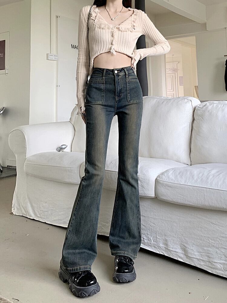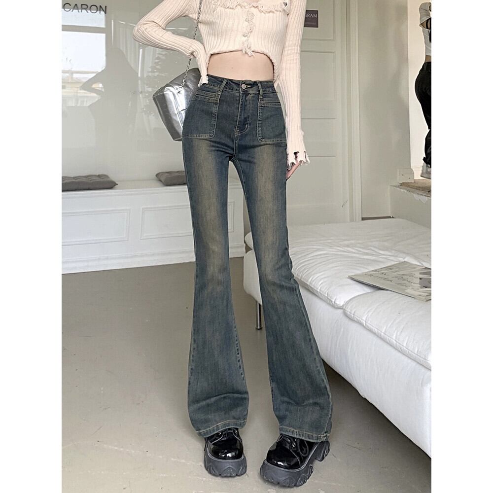 マイクロラギングジーンズ女性 2024 春と秋の新しいフレンチレトロファッション多用途ハイウエストスリムフロアレングスストレートパンツ スプリング 春物 オータム 秋物 missk57811988563